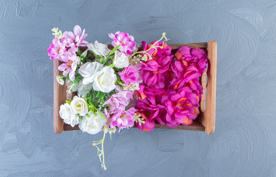 Цветущие искусственные растения в ящиках / вставках