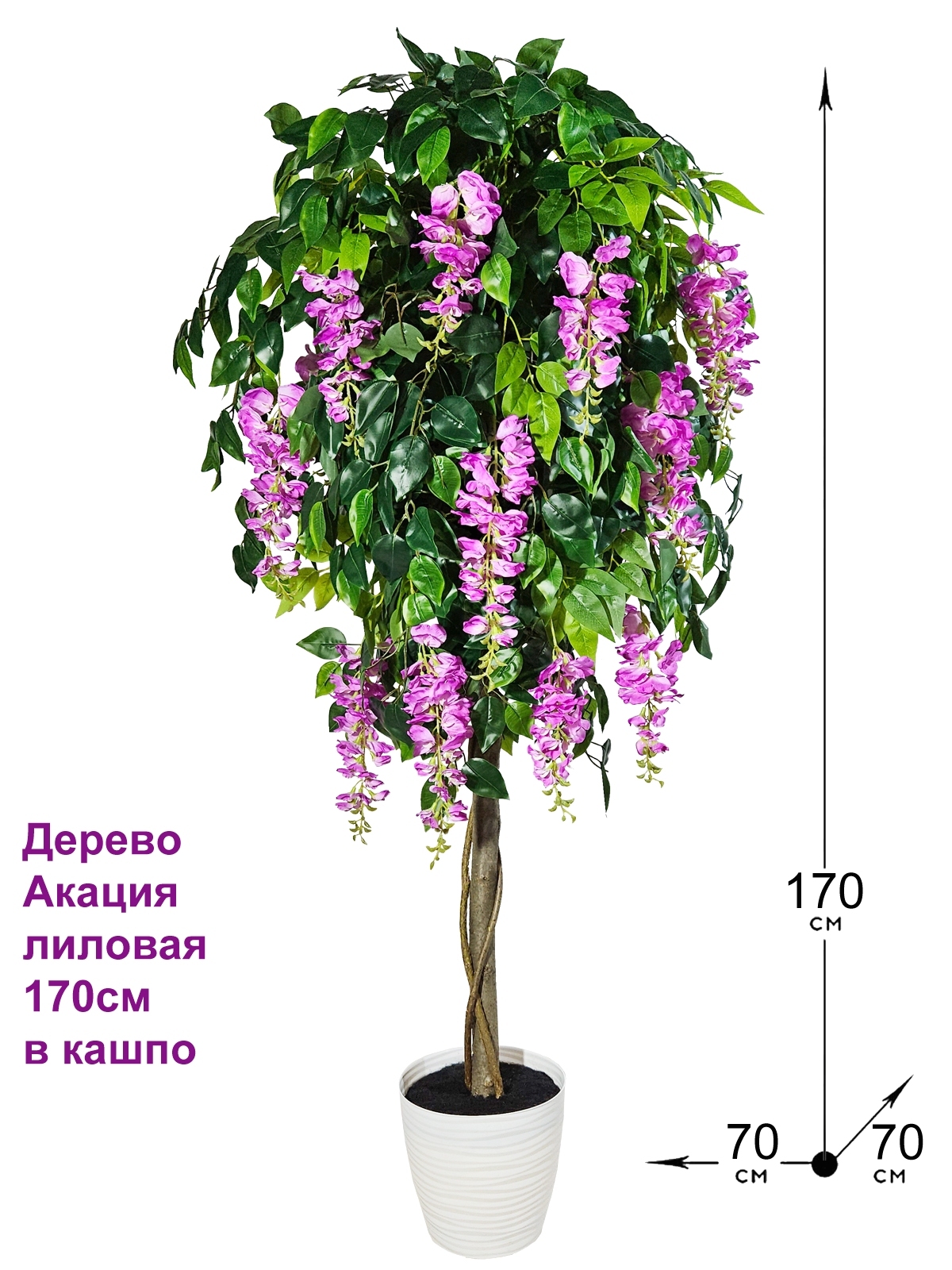 Дерево искусственное Акация лиловая 170см в белом кашпо – идеальное декоративное решение для вашего дома, кафе или ресторана. Это зеленое декоративное дерево создаст атмосферу природы и комфорта в любом интерьере. Благодаря своей натуральной внешности, оно станет украшением как дачи, так и офиса.