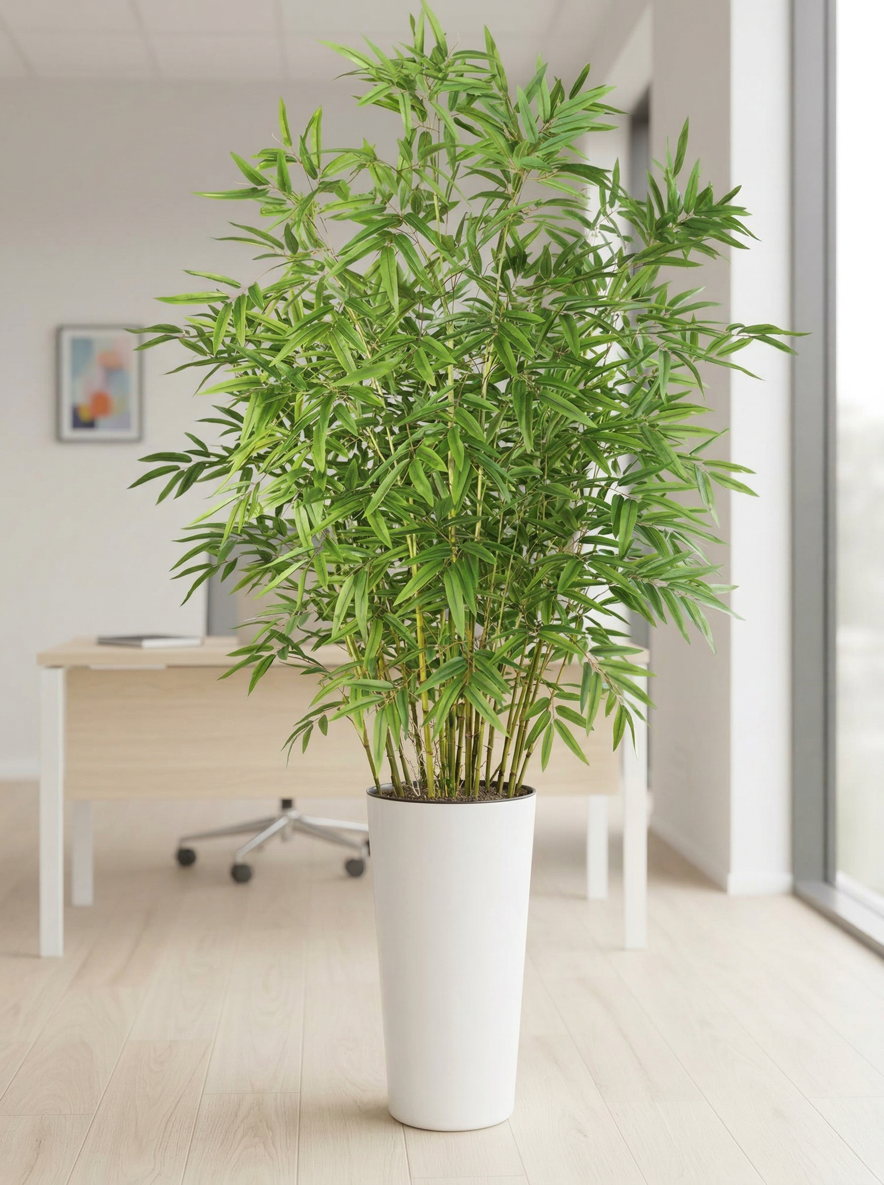 Бамбук Люкс в высоком белом глянцевом кашпо