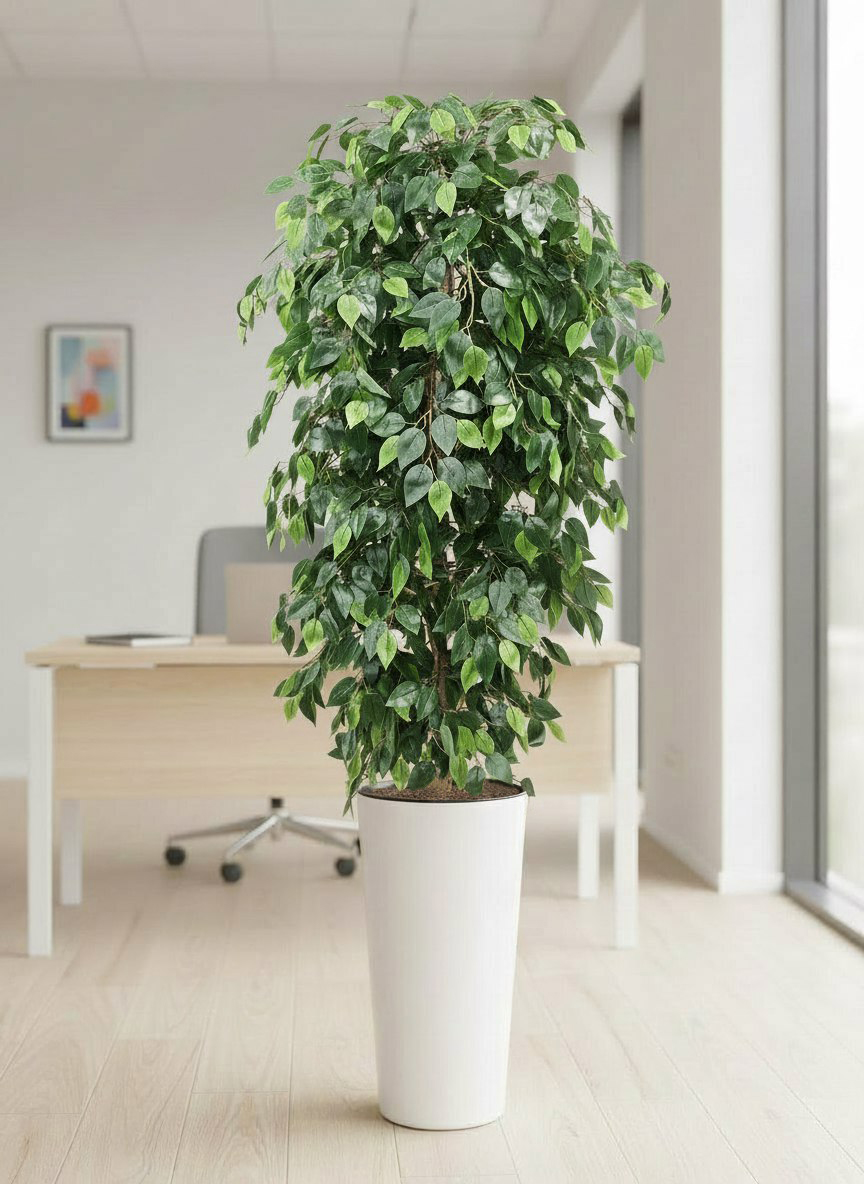 Фикус Даниэль в высоком белом глянцевом кашпо