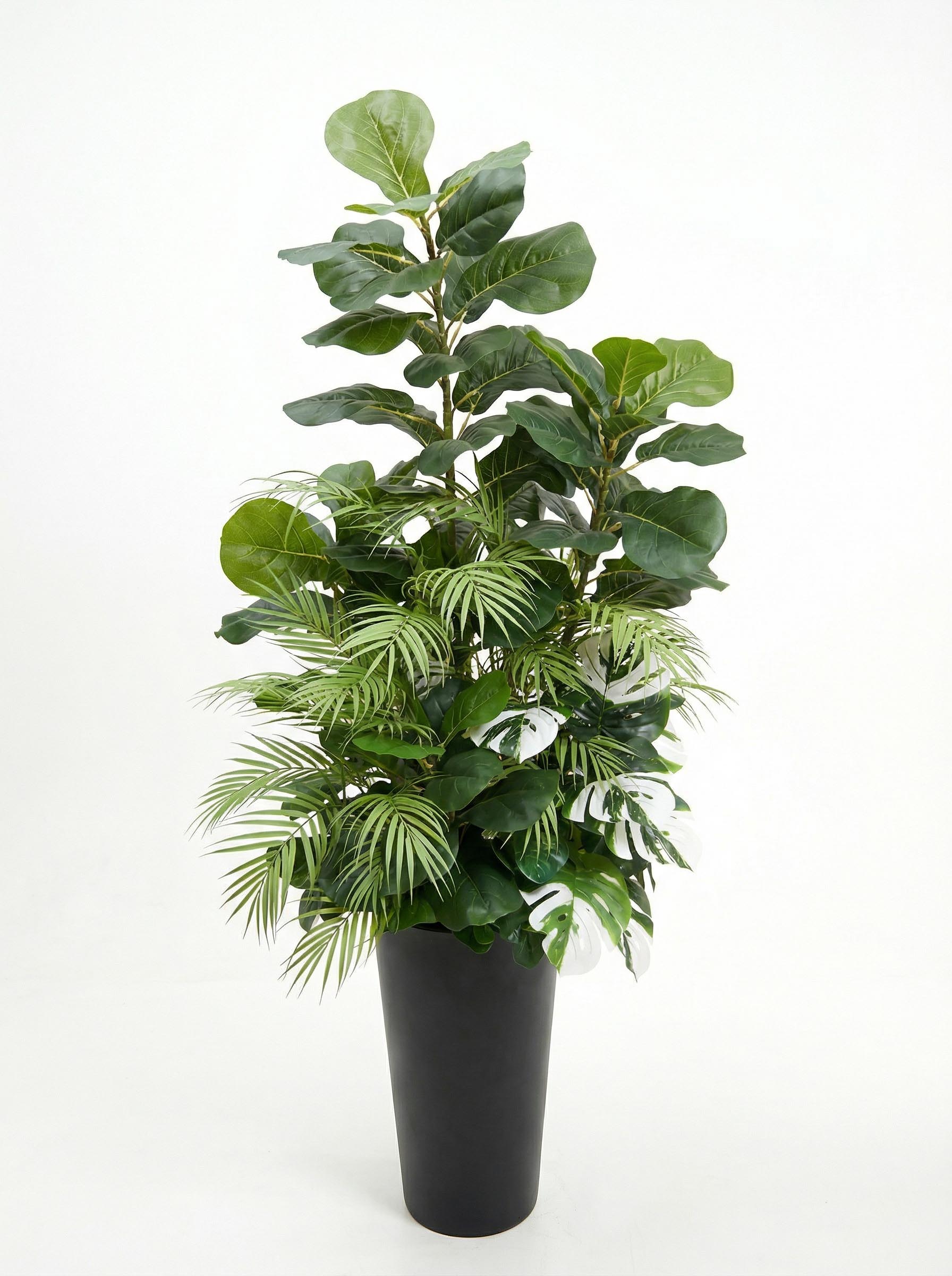 Эти большие искусственные растения в высоком кашпо цвета Графит помогут украсить ваш дом, офис, торговый центр или магазин. Высокое искусственное растение фикус лировидный - идеальный выбор для создания эффектного акцента в пространстве, для озеленения офиса, кафе, ресторана, для зонирования комнаты или для создания уютного зеленого уголка.