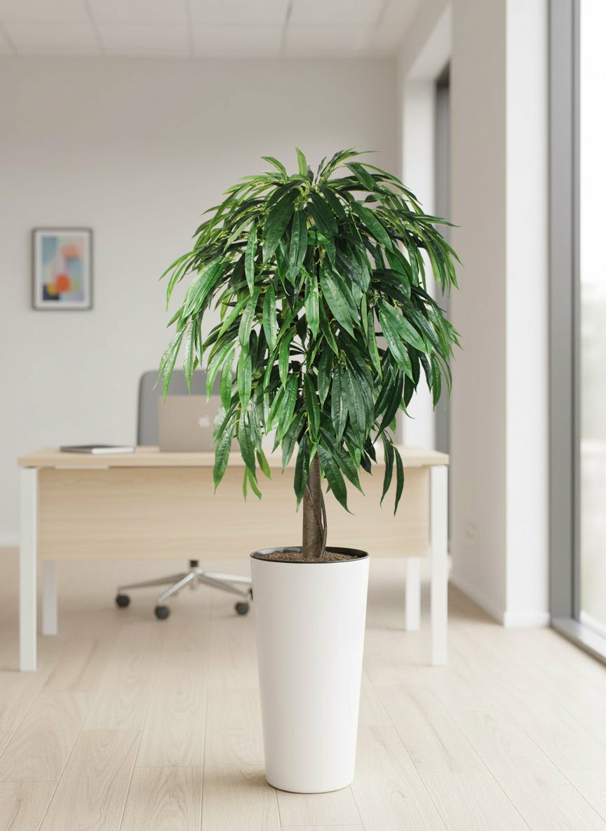 Фикус Лонгифолия в высоком глянцевом белом кашпо