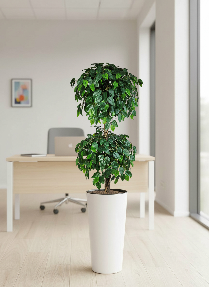 Фикус Шар двойной в высоком белом глянцевом кашпо