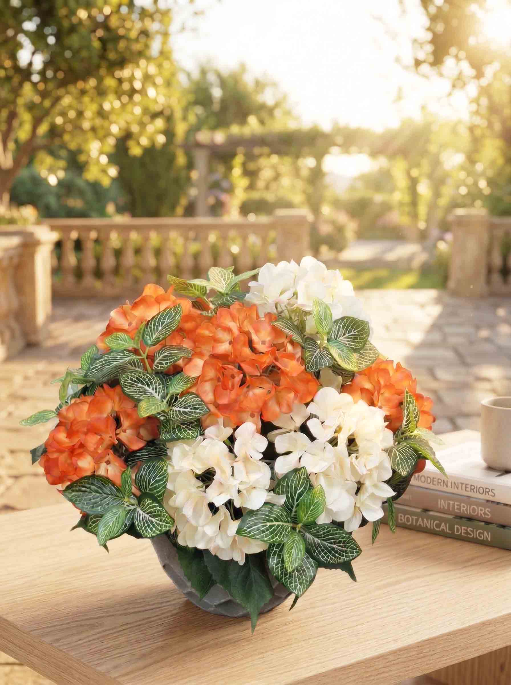 Гортензия кремово-оранжевая в горшке искусственная
