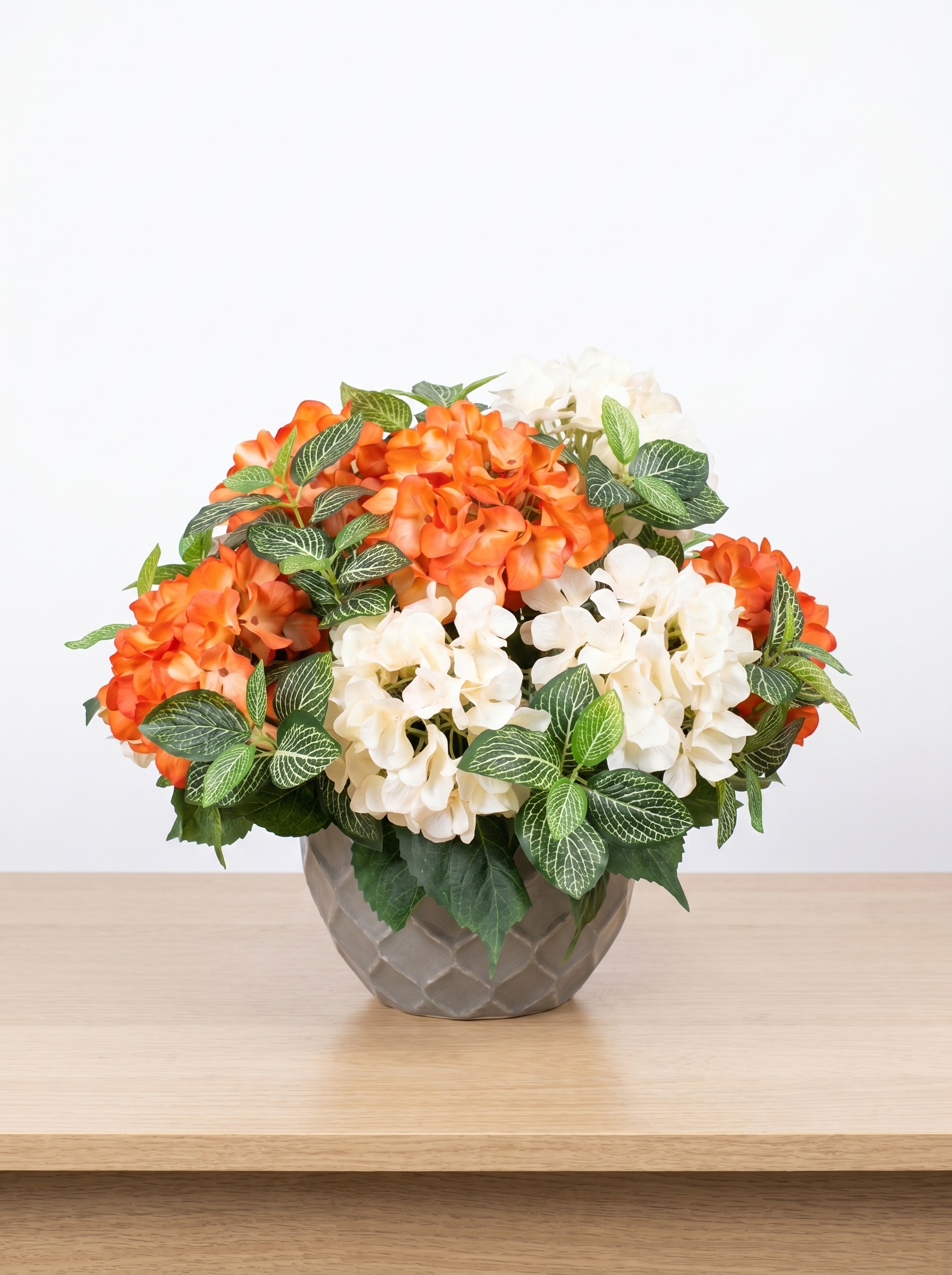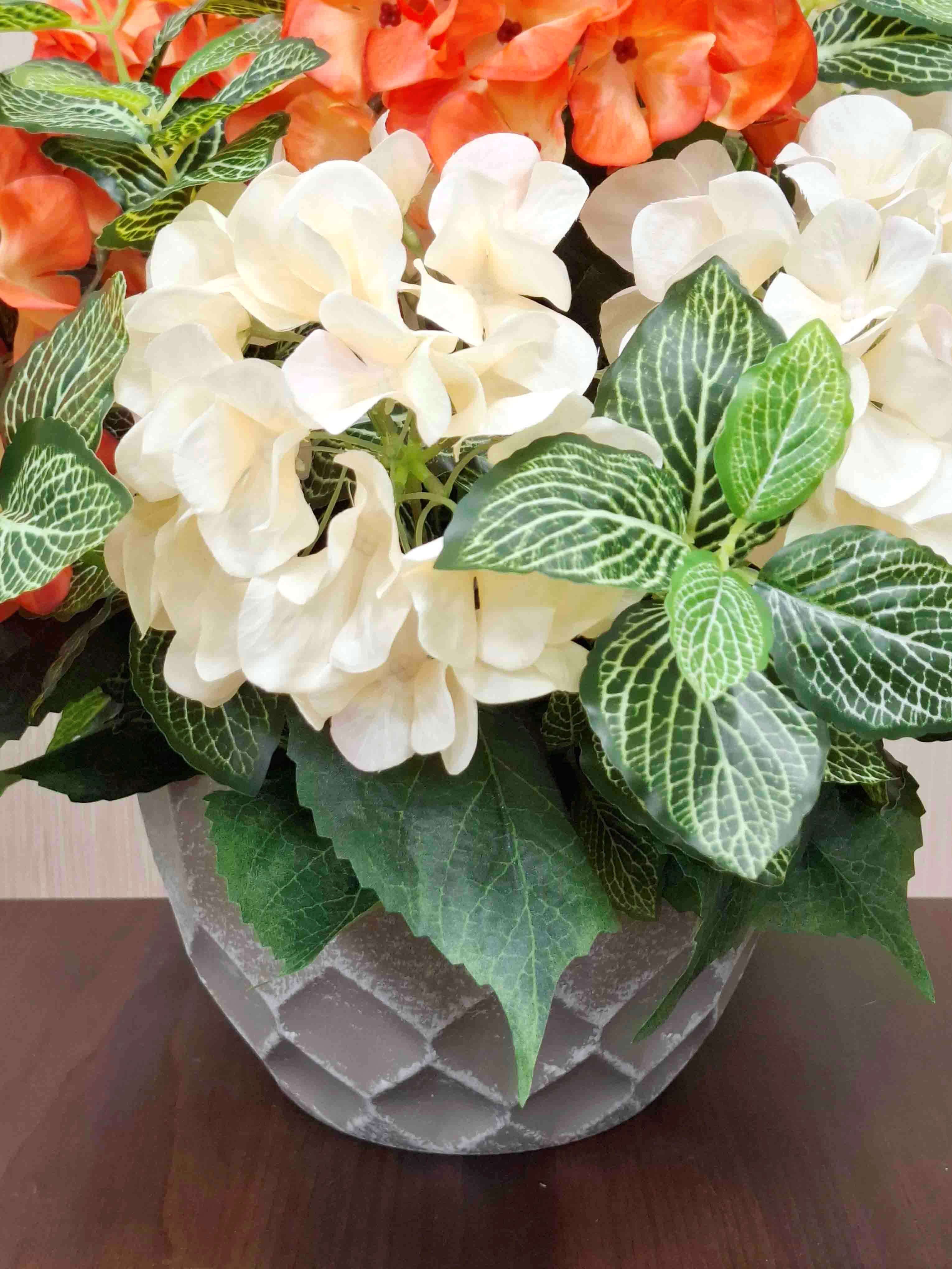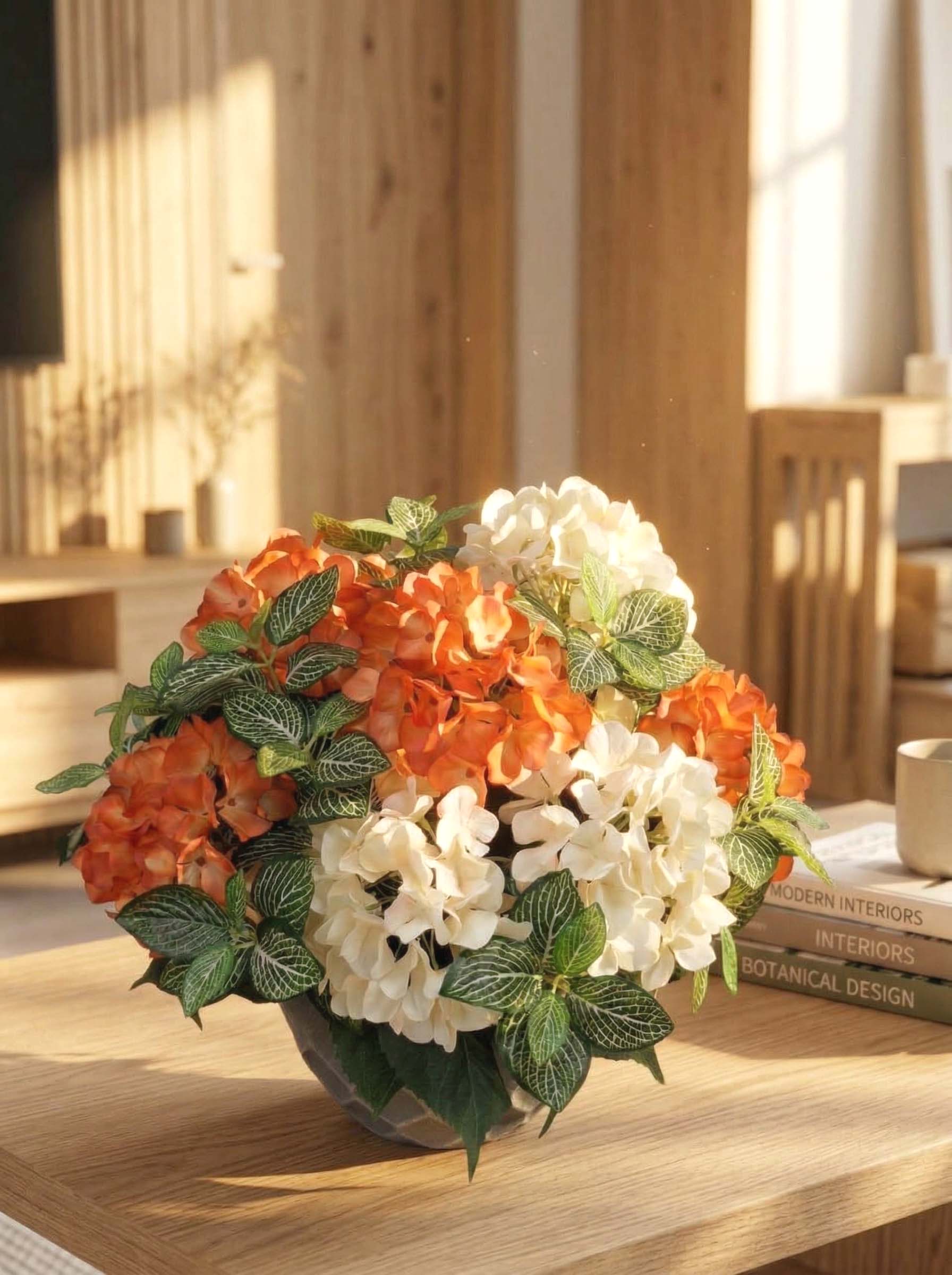 Ищете идеальный декор для дома, который не завянет? Наша интерьерная композиция из кремовых и оранжевых гортензий в стильном сером кашпо — это готовое решение для создания домашнего уюта. Реалистичные искусственные цветы премиум-качества выглядят как живые и станут красивым акцентом в любом помещении.