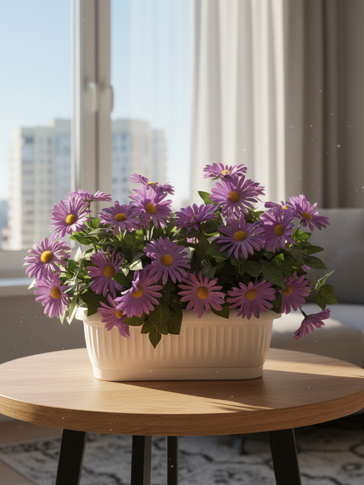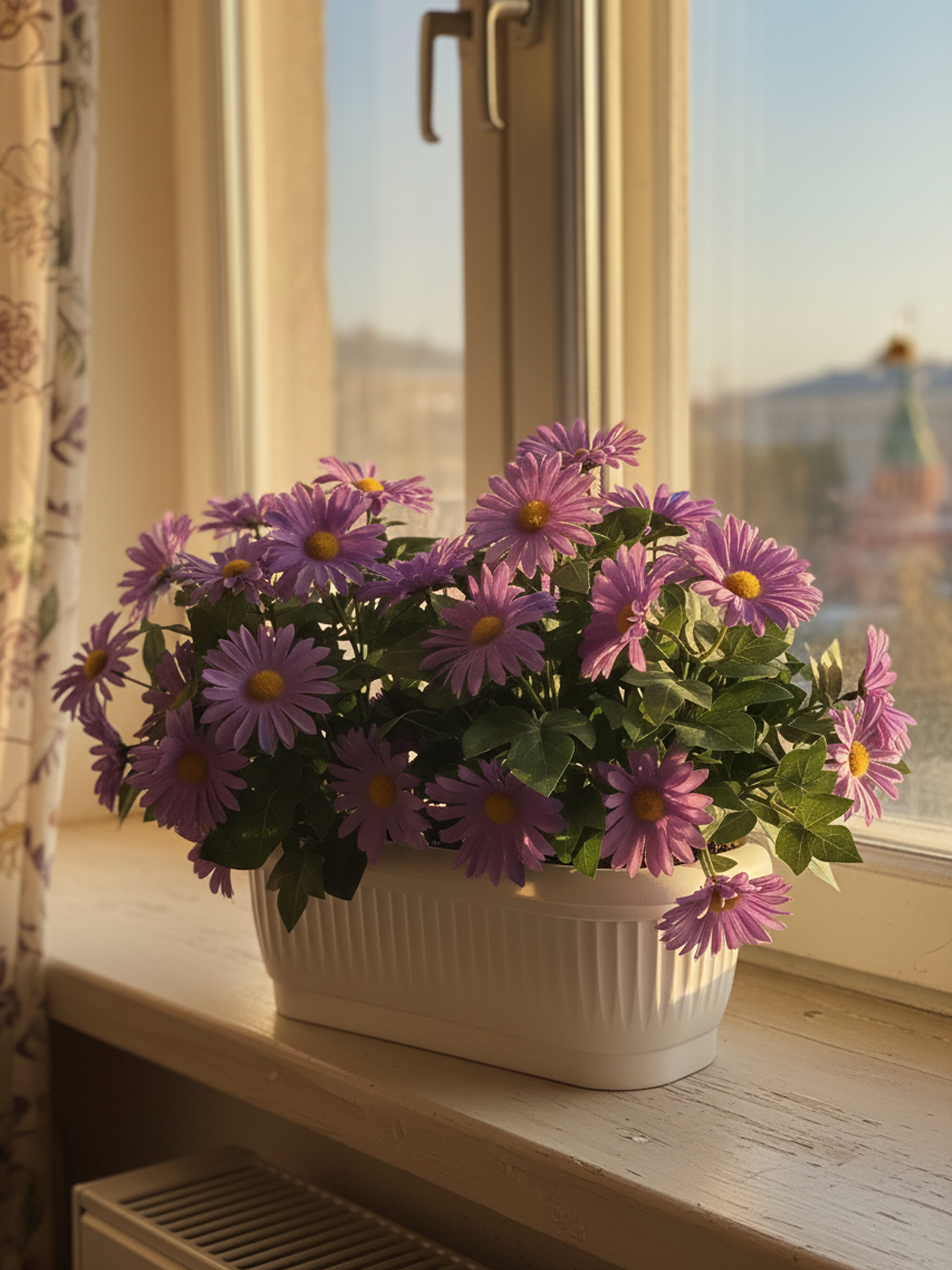 Осень – это время, когда природа одевается в пестрые краски, а ваш дом может стать настоящим уголком уюта. Именно поэтому мы предлагаем вам уникальный декор для балкона или для подоконника – хризантемы искусственные лилово-фиолетовые в длинном кашпо от известного бренда ФитоПарк.