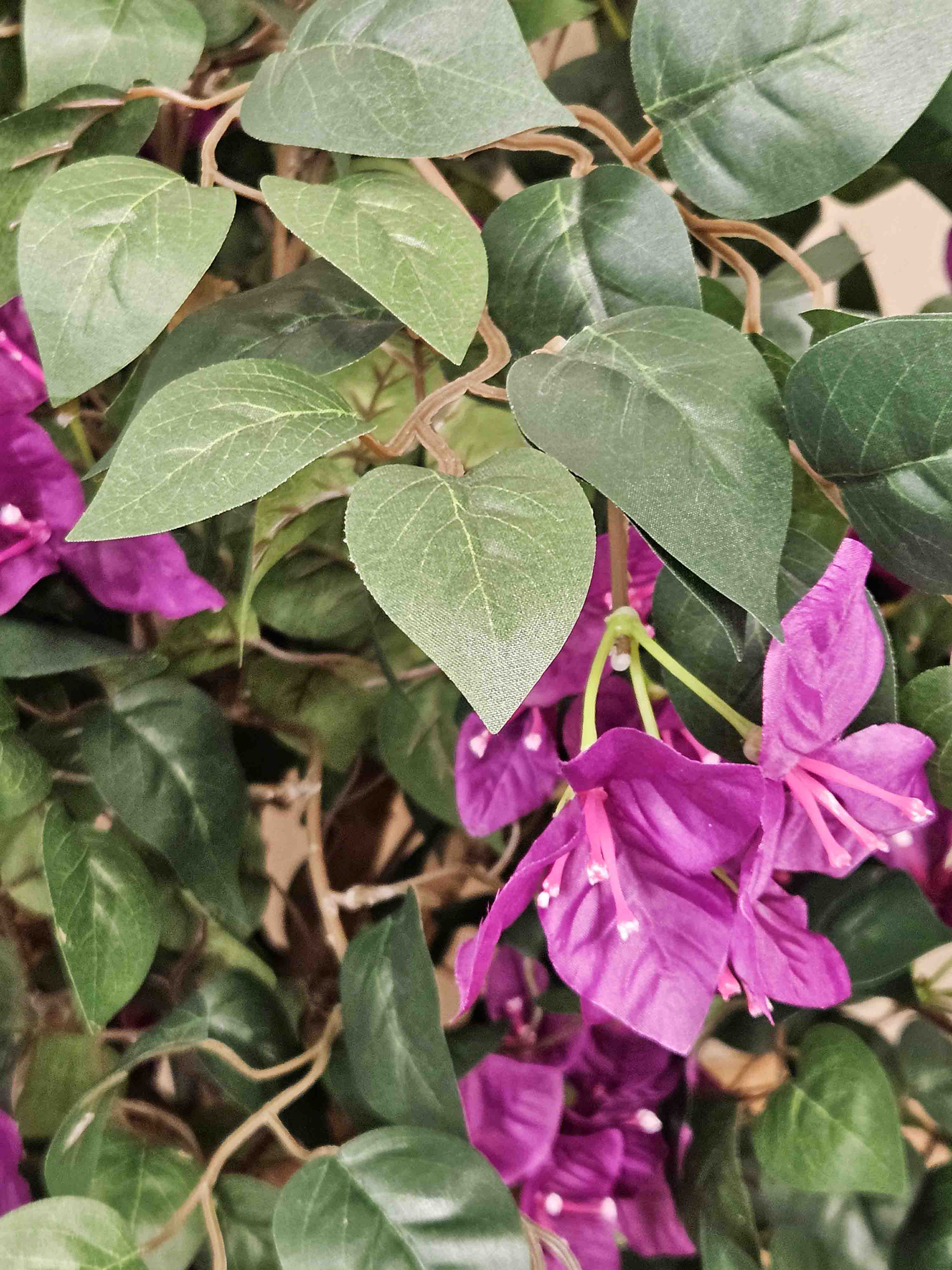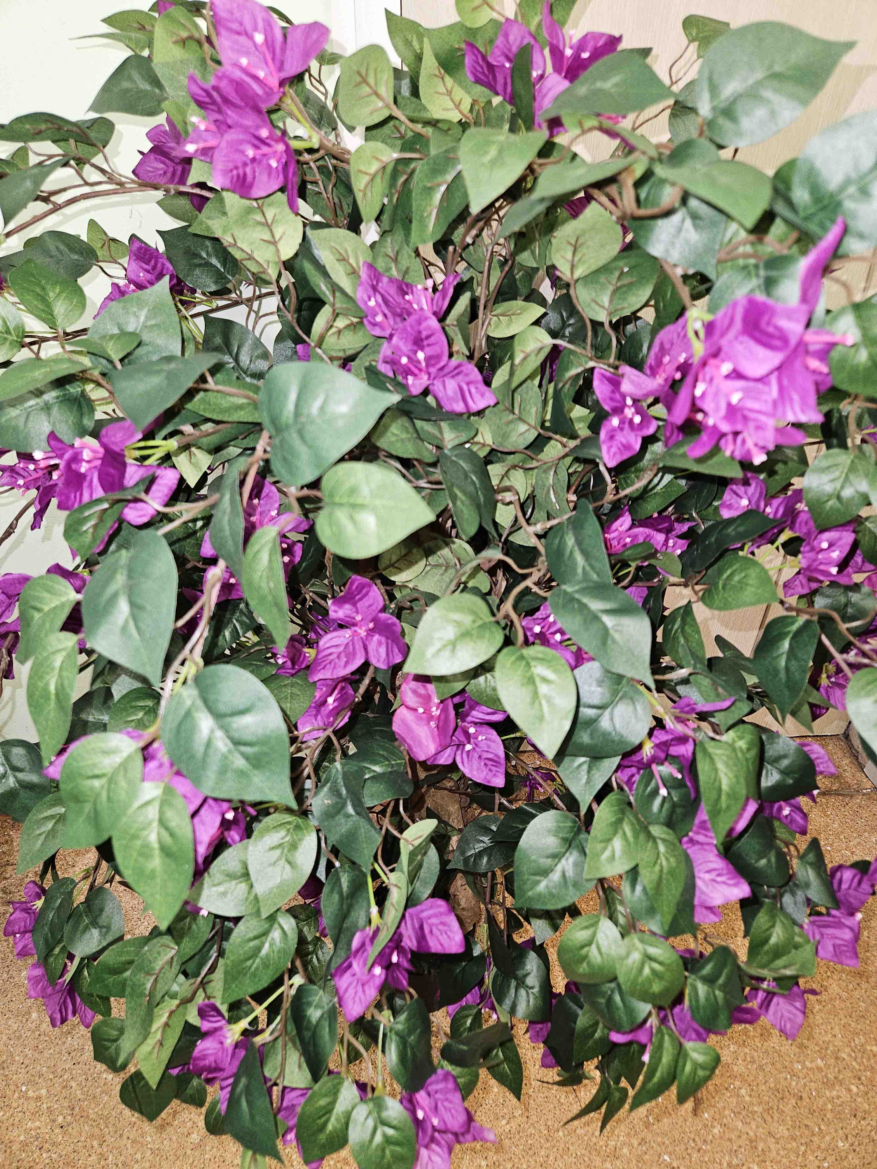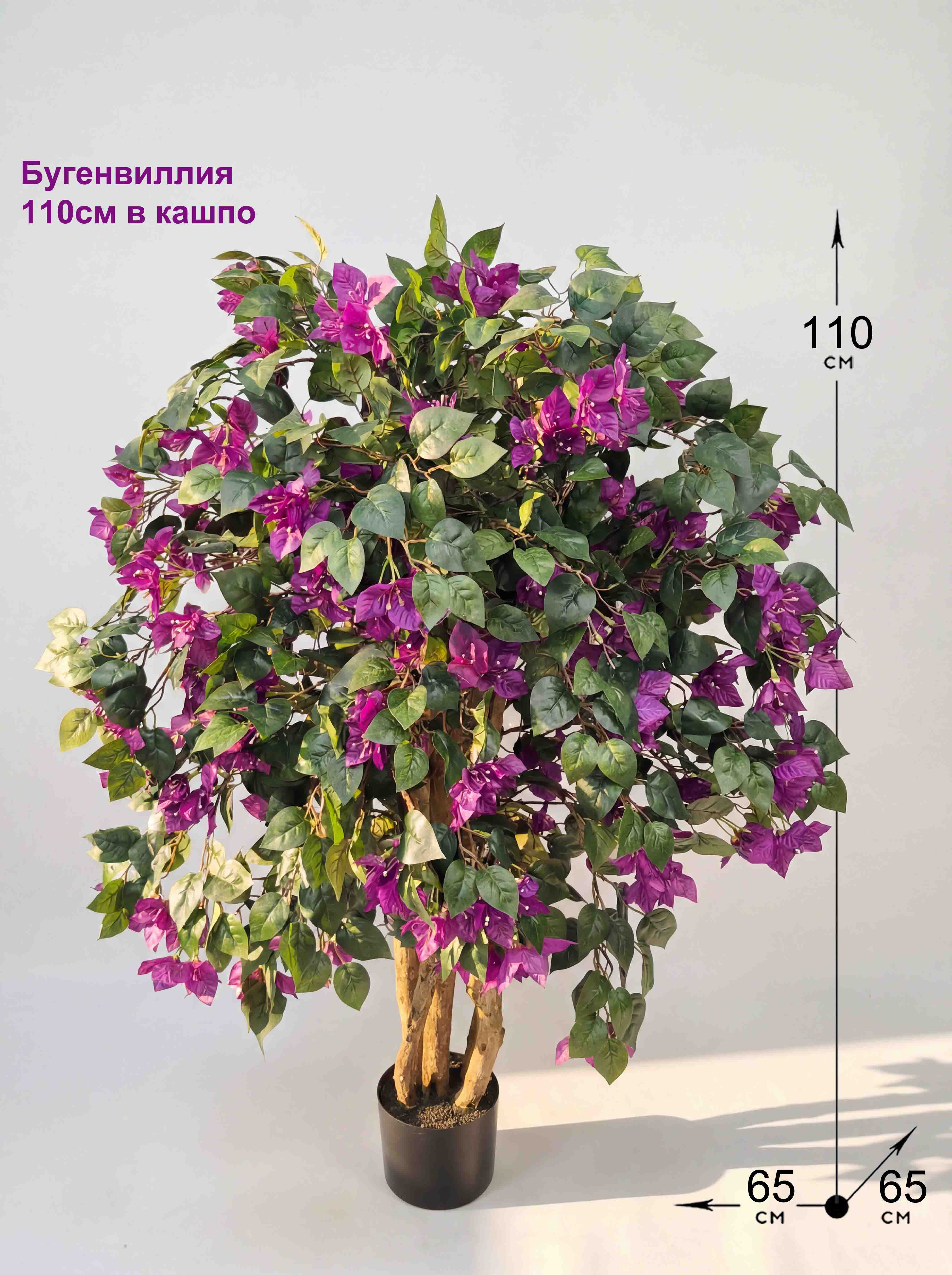 Размер искусственной бугенвиллии в техническом кашпо ВхШхГ: 110х65х65 см.