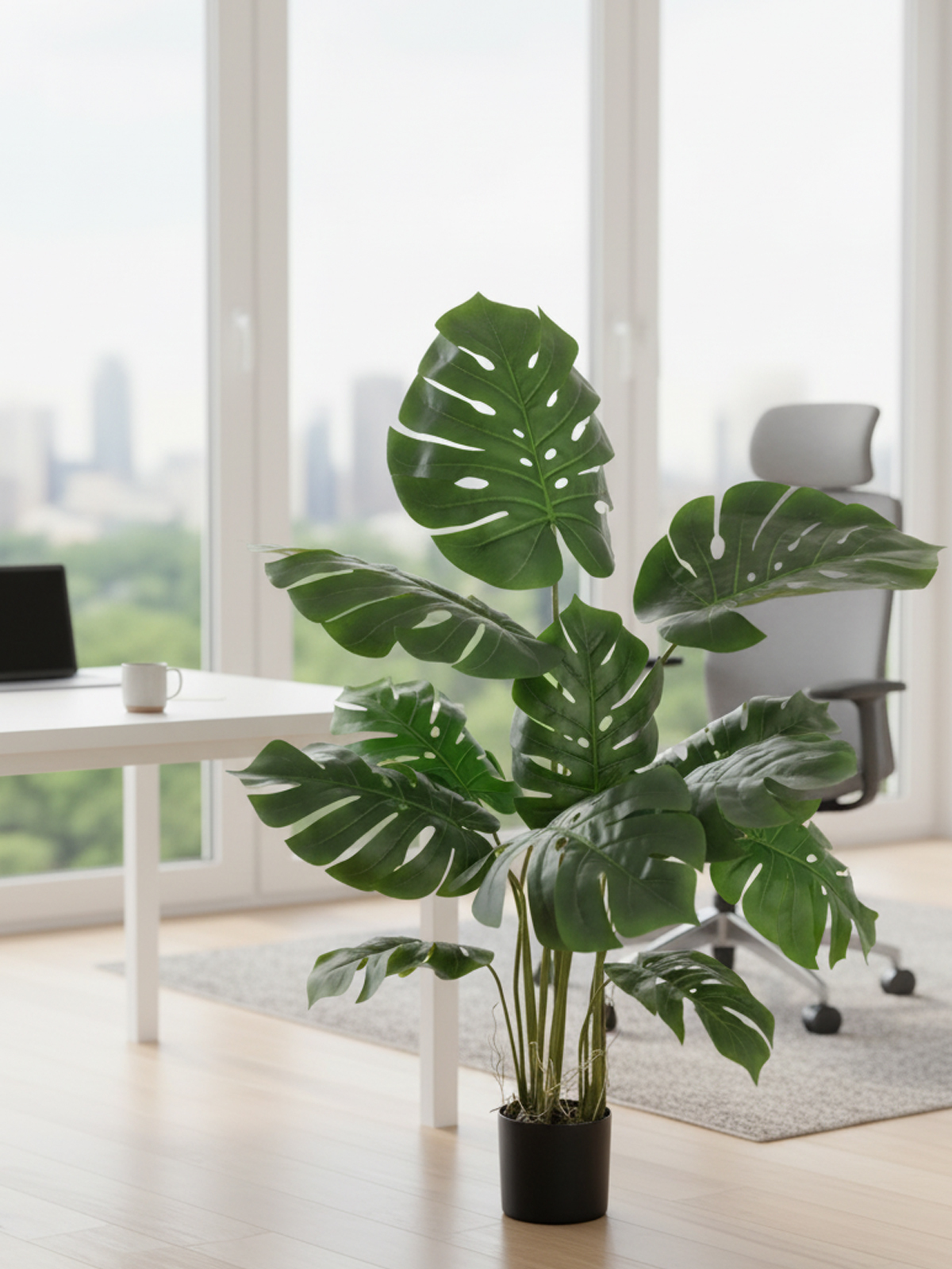 Искусственная монстера в кашпо - это отличный вариант для украшения любого помещения, дома или офиса, спортивного зала или комнаты для медитаций и йоги. Монстера высокая в горшке может стать центральным элементом интерьера или дополнением к другим растениям для создания зеленой зоны или зеленого уголка для отдыха. Выбирайте искусственную монстеру в кашпо от ФитоПарк и создайте уникальный дизайн своего дома!
