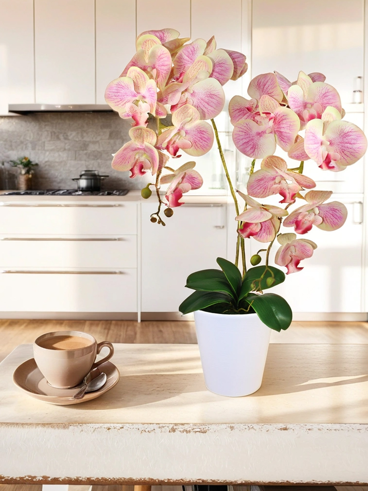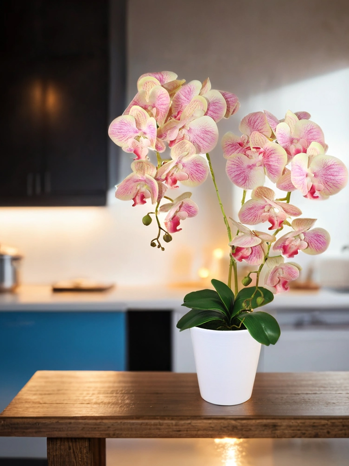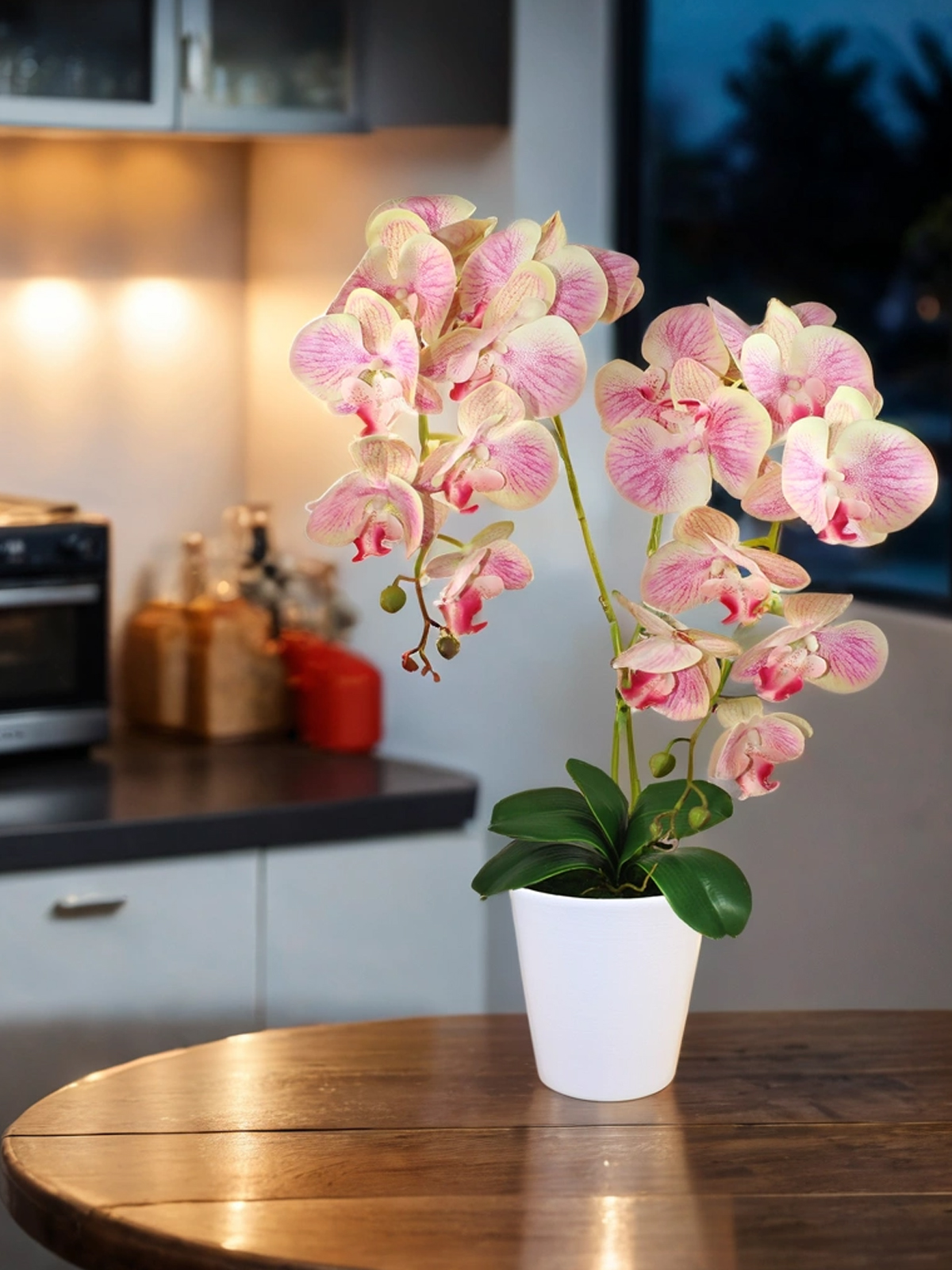 С нашей искусственной орхидеей в кашпо ваш интерьер всегда будет стильным и уютным, подчеркивая ваш изысканный вкус и внимание к деталям.