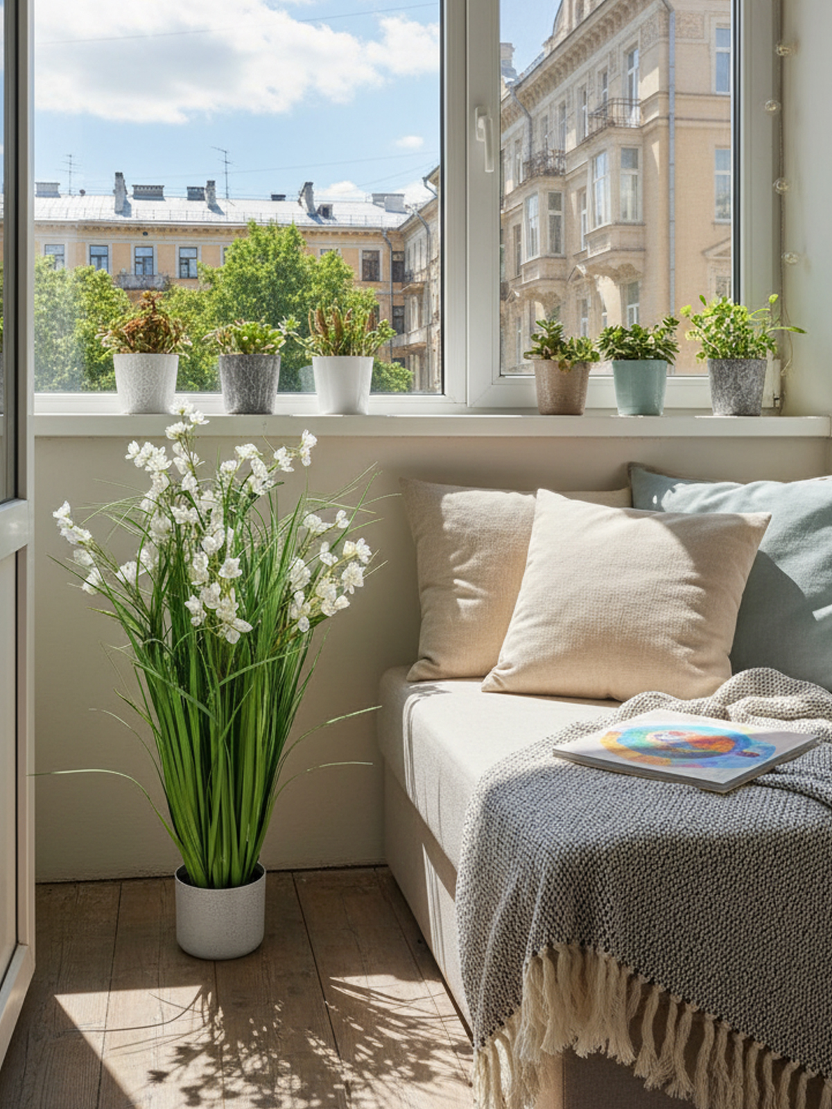 Эта цветущая трава выглядит невероятно реалистично благодаря детализированным элементам и высококачественным материалам. Искусственная осока высокая идеально подходит для добавления зелени и свежести в помещения без необходимости ухода за ней.
