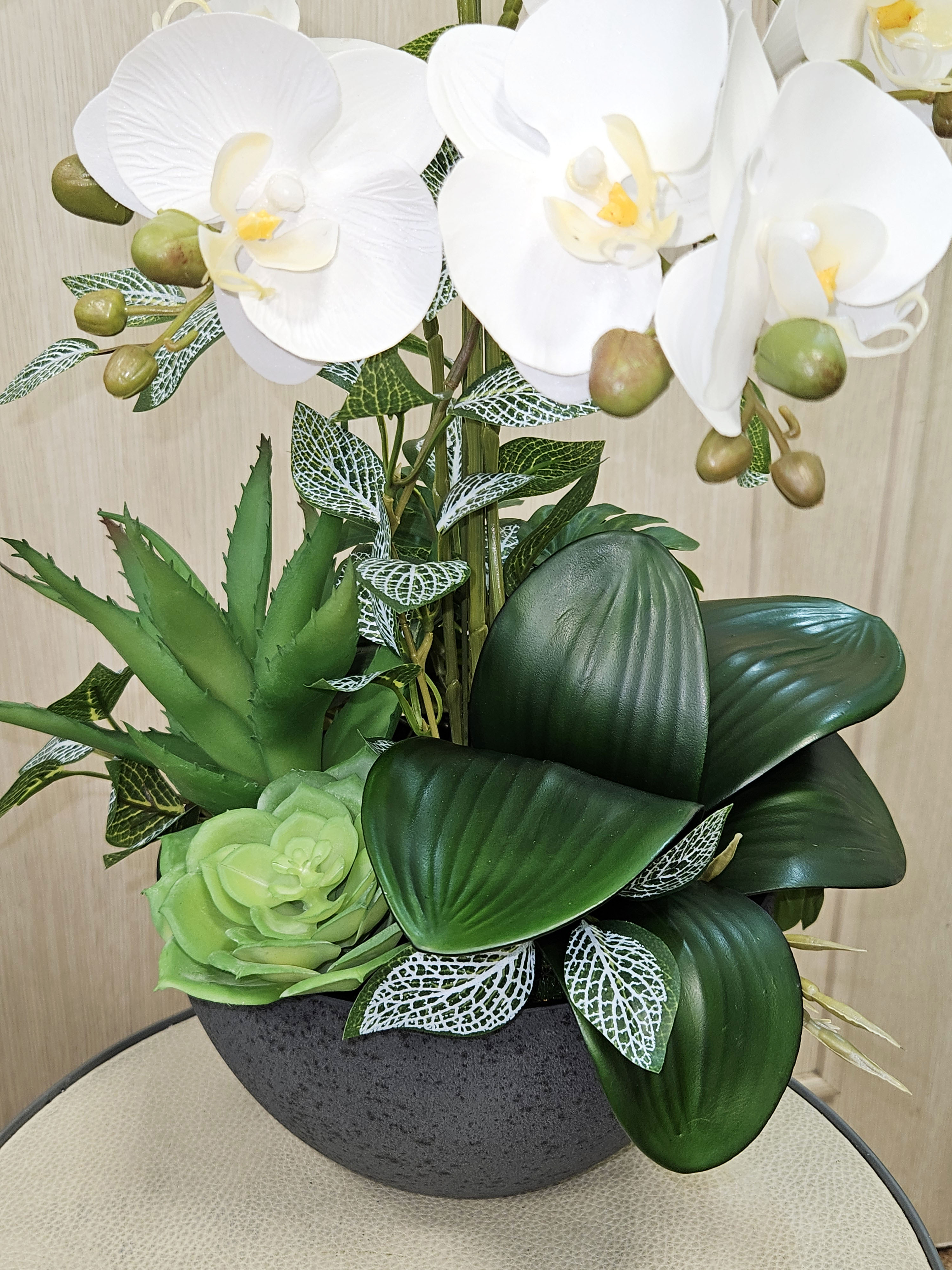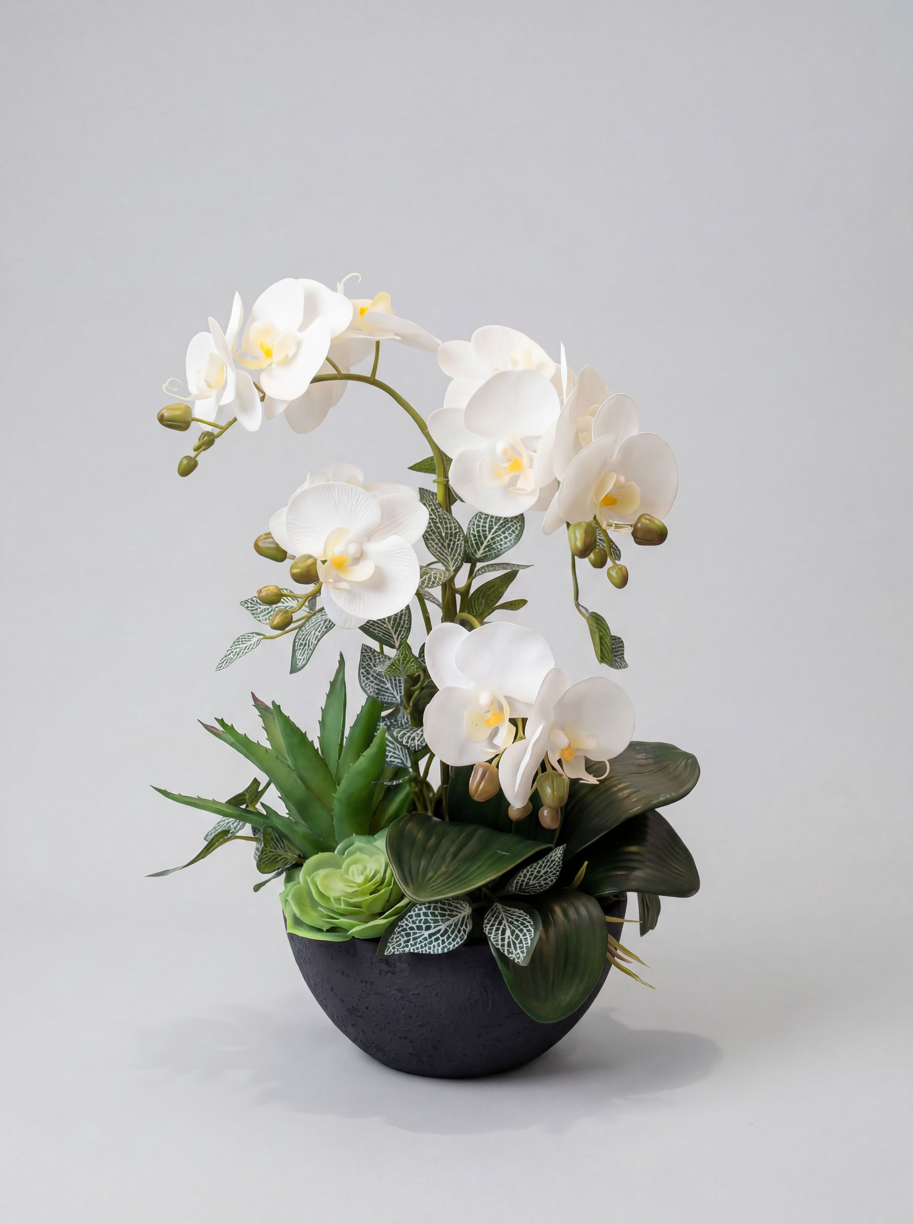 Если вы ищете уникальный подарок для мужчины или женщины, то этот оригинальное кашпо с орхидеями, суккулентами и зеленью станет отличным выбором. Композиция из искусственных цветов - это необычный подарок подруге или другу, полезный подарок для частного дома, подарок для уюта и комфорта в доме! Подойдет для любого праздника, на новоселье, на открытие офиса или салона!