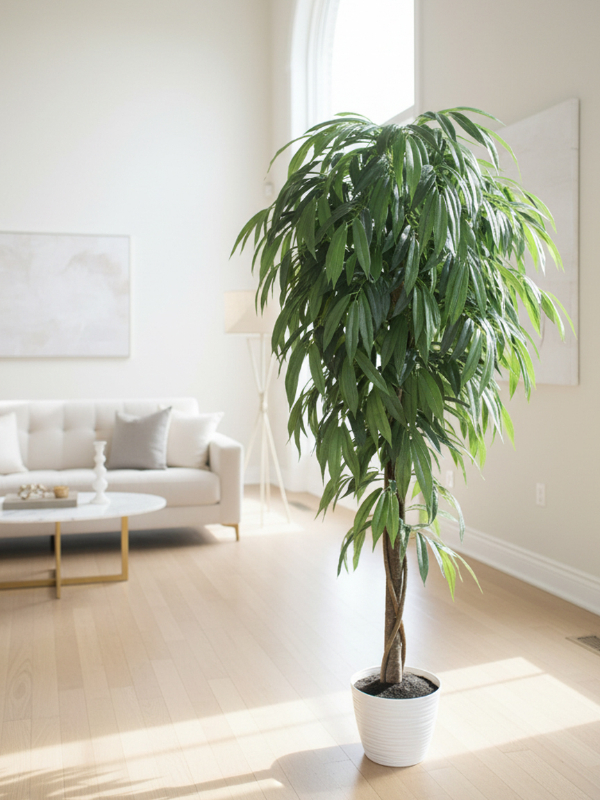Искусственное дерево Фикус Лонгифолия высотой 170см в элегантном кашпо от бренда ФитоПарк станет идеальным украшением для интерьера вашего дома, офиса или дачи, принося в пространство нотку природной свежести и уюта. Это большое искусственное растение позволит вам создать стильный и ухоженный вид, не требуя при этом особого ухода и заботы, как живые деревья. Благодаря своему реалистичному внешнему виду и продуманным деталям, Фикус Лонгифолия прекрасно подойдет для украшения зон отдыха, рабочих кабинетов, приемных, бань и бассейнов, успешно дополняя любой стиль интерьера – от классического до ультрасовременного.