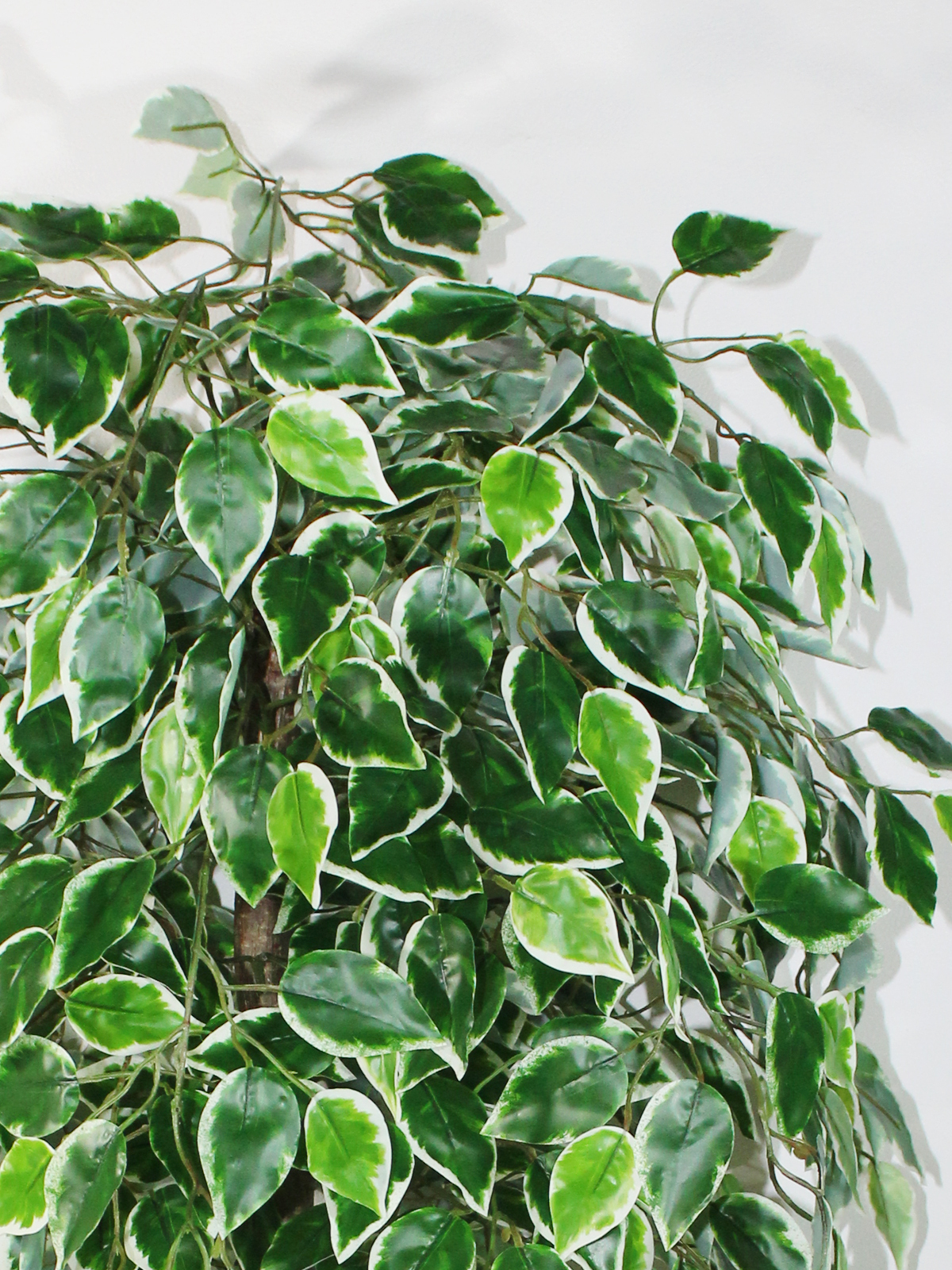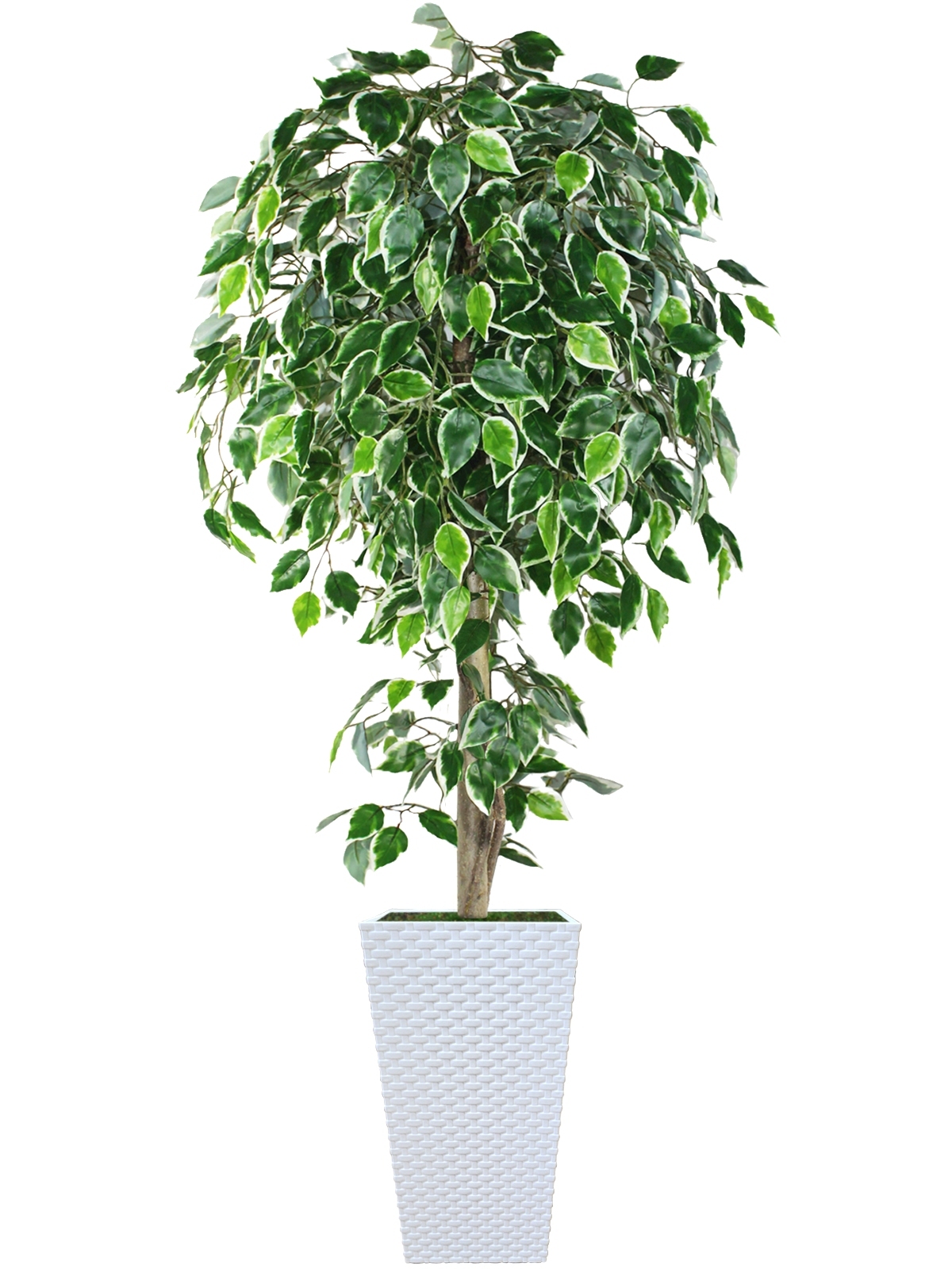 Фикус Пестролистный, а точнее фикус бенджамина вариегатный - это большое искусственное дерево, которое выглядит совершенно естественно. Его яркая бело-зеленая привлекает внимание и создает ощущение ажурного, натурального живого растения.