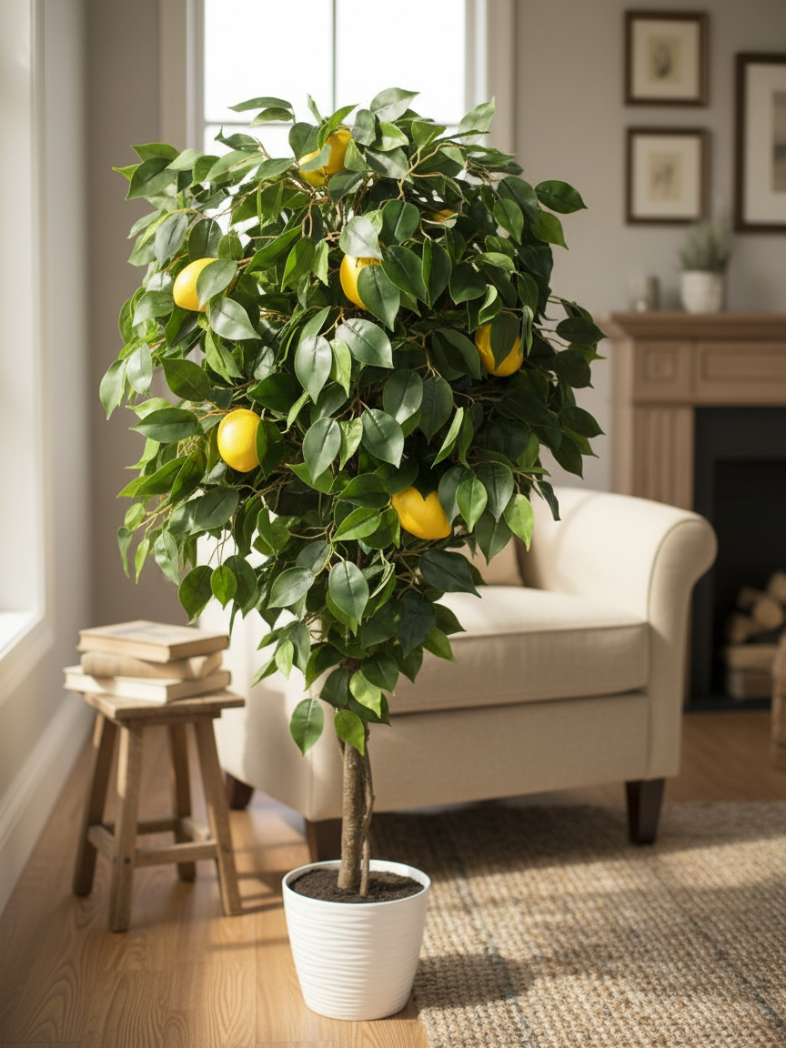 Не упустите возможность создать уют и комфорт в вашем доме с помощью искусственного дерева Лимон от ФитоПарк. Оно станет не только украшением интерьера, но и отличным способом добавить свежести и зелени в ваше пространство без лишних хлопот.