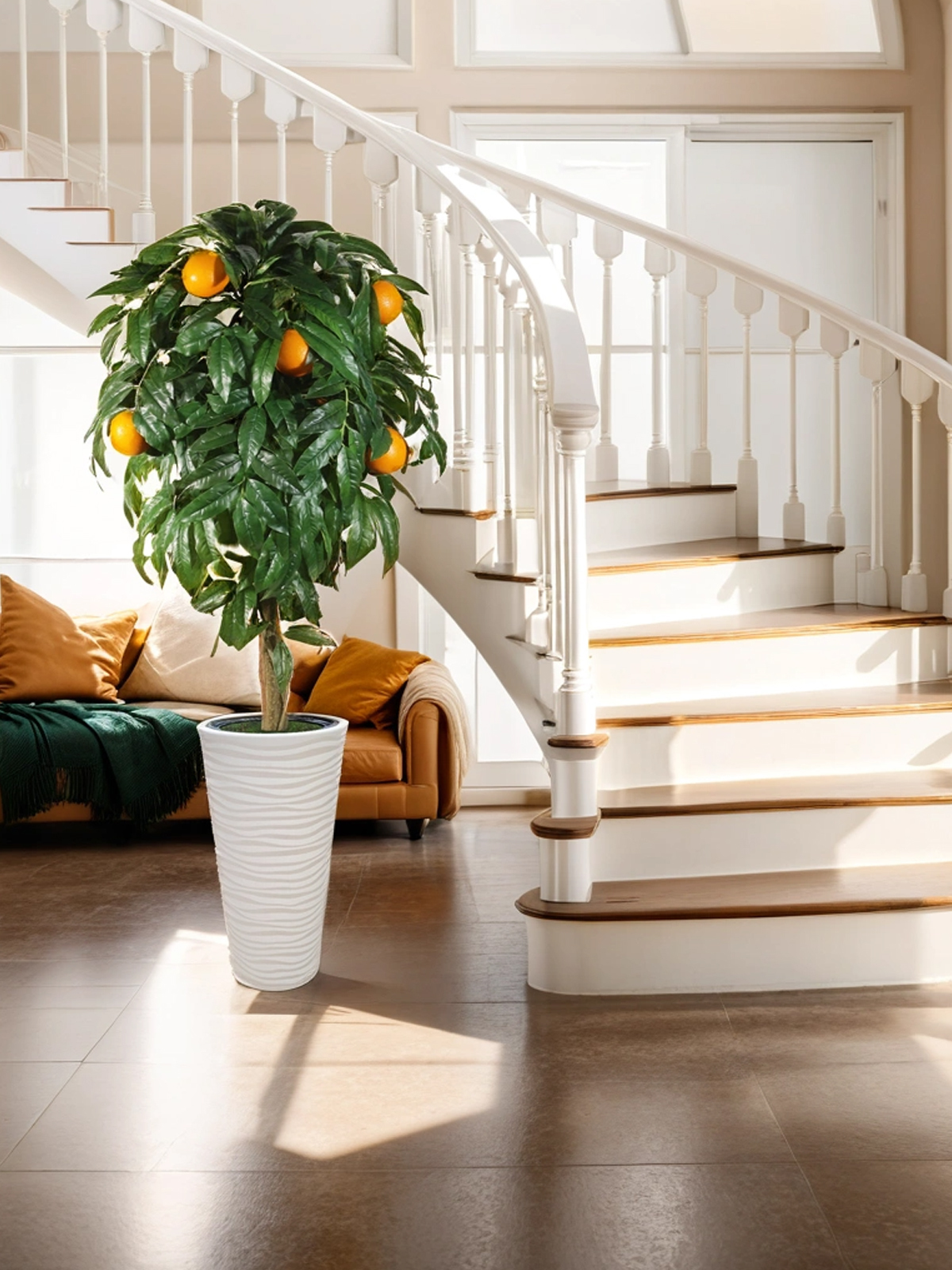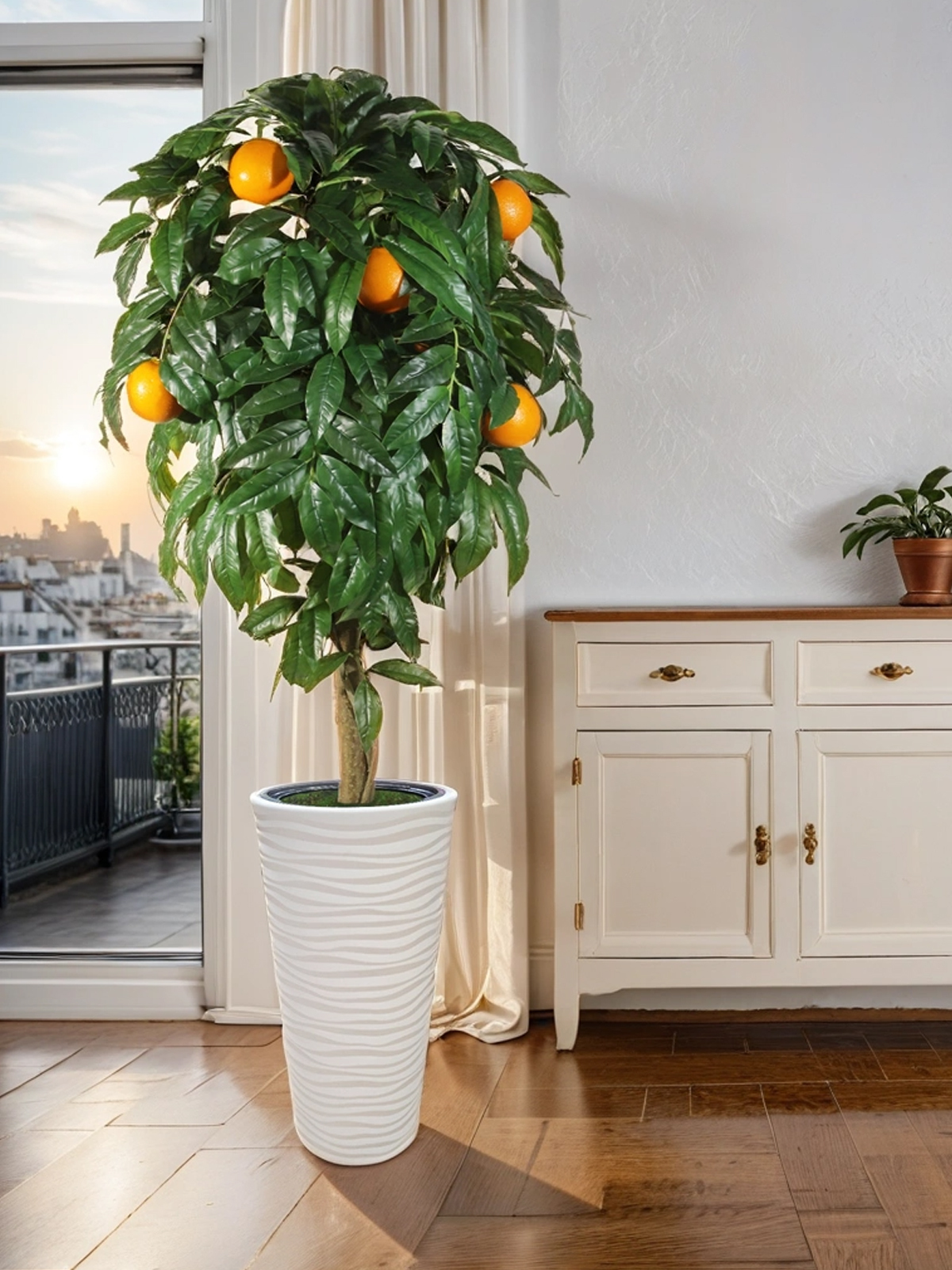 Одно из наиболее популярных декоративных плодовых деревьев является искусственное дерево Апельсин - это прекрасная имитация настоящего плодового дерева, созданная на натуральном стволе с использованием высококачественного латекса и передовых технологий. В мире дизайна интерьеров все большую популярность приобретают искусственные растения, включая искусственные плодовые деревья. Они предлагают ряд преимуществ и возможностей, которые делают их привлекательным выбором для создания уникальной атмосферы и стиля в помещениях. Оно имеет реалистичный вид, с натуральной зеленой листвой и яркими апельсинами, что позволяет создавать эффект естественности в помещениях различного характера: в квартире, на даче, в загородном доме или в различных коммерческих помещениях. Декоративные деревья для интерьера дома с плодами не требуют постоянного ухода, полива или обрезки. Они остаются всегда свежими и красивыми, независимо от условий содержания. Они не теряют листву, не стареют и не требуют замены как настоящие растения и позволяют наслаждаться ими круглый год! Ствол дерева разъемный, соединяется в один клик штифтом.