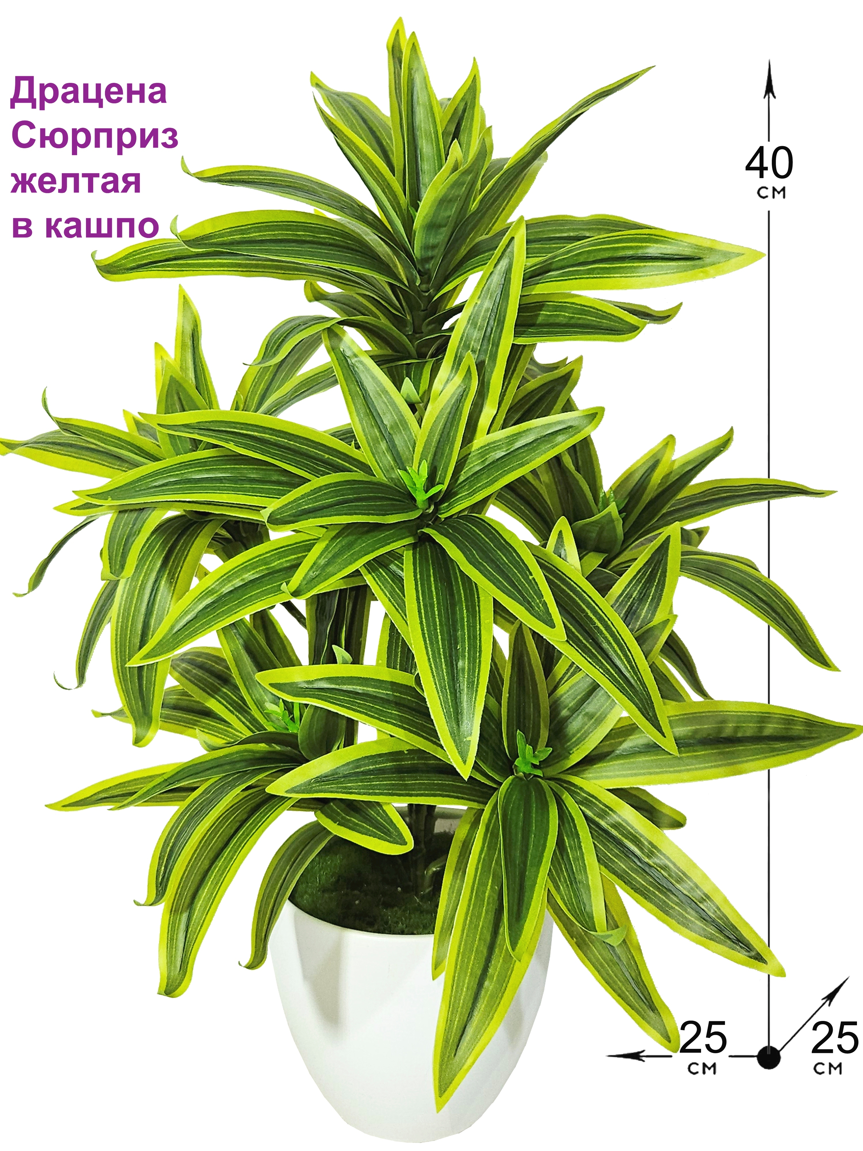 Очень реалистичное искусственное растение в кашпо - Драцена Сюрприз - станет украшением Вашего интерьера! Листочки выполнены из качественного плотного латекса. Декоративное растение в кашпо не требует особого ухода, не боится влаги, можно ставить в ванную комнату, к бассейну и в сауну. Драцена декоративная в кашпо - это оригинальный элемент дизайна гостиной или рабочего кабинета, она украсит коридор или балкон, кухню или лоджию. Драцена сделает любую жилую комнату уютной, особенно если мало света и живые растения не растут.