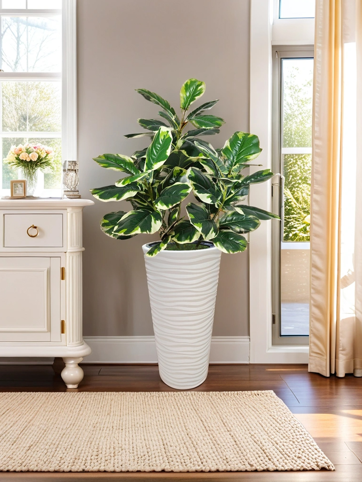 Растение искусственное в кашпо является отличным выбором для тех, кто хочет украсить своё помещение, но не имеет времени для ухода за живыми растениями. Фикус Лирата искусственный в горшке — это идеальный вариант для создания живого уголка в вашем доме без необходимости полива и заботы.