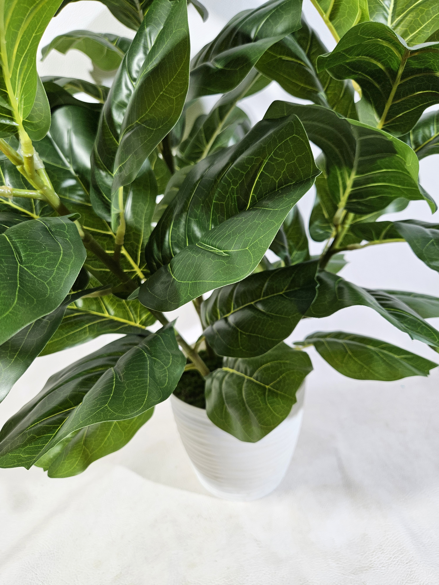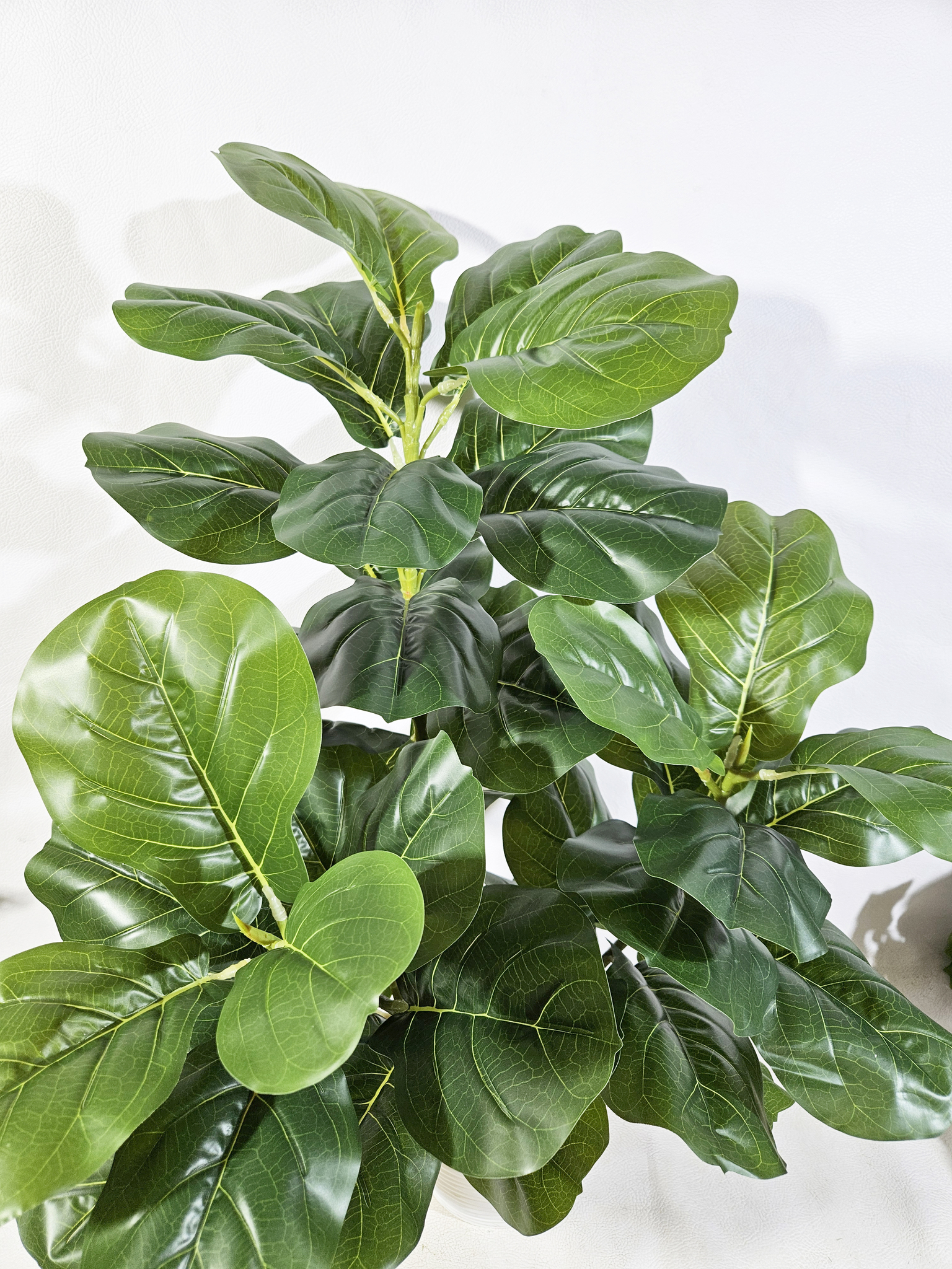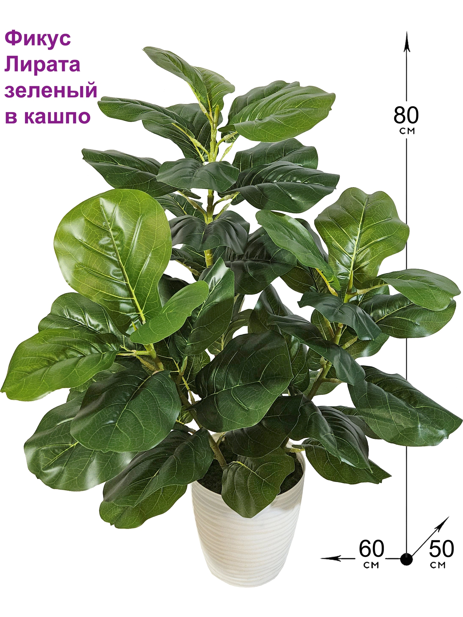 Современное искусственное растение - Фикус Лирата высотой 80см порадует Вас обилием листьев красивой формы, а также насыщенными зелеными оттенками листвы! В кашпо из белого пластика закреплены 3 ветки фикуса. В сердцевине веток – проволочное основание, которое позволяет изгибать их, формируя крону на любой вкус. И каждый листик тоже можно отогнуть. Неприхотливость, устойчивость к любому освещению и погодным условиям позволяют размещать кашпо с качественной имитацией фикуса в любом месте, будь то бассейн, ванная комната или даже открытая терраса. Искусственное растение Фикус Лирата не требовательно в уходе, не боится влаги. Его можно поставить в свое декоративное кашпо, чуть большего размера.
