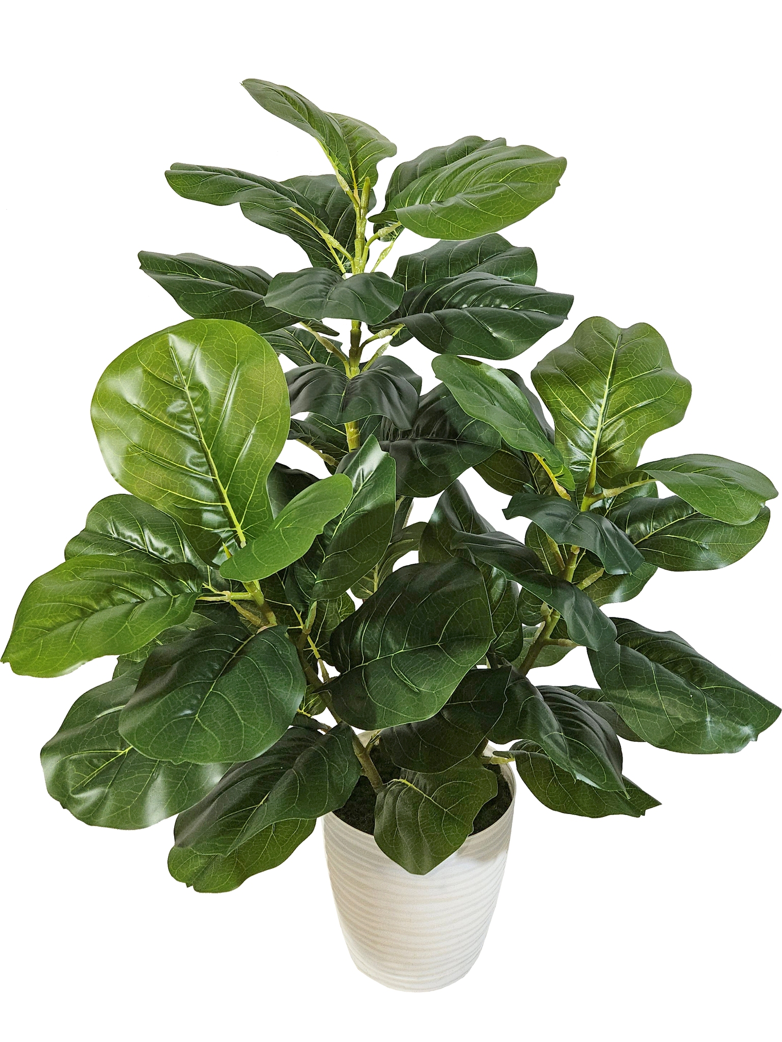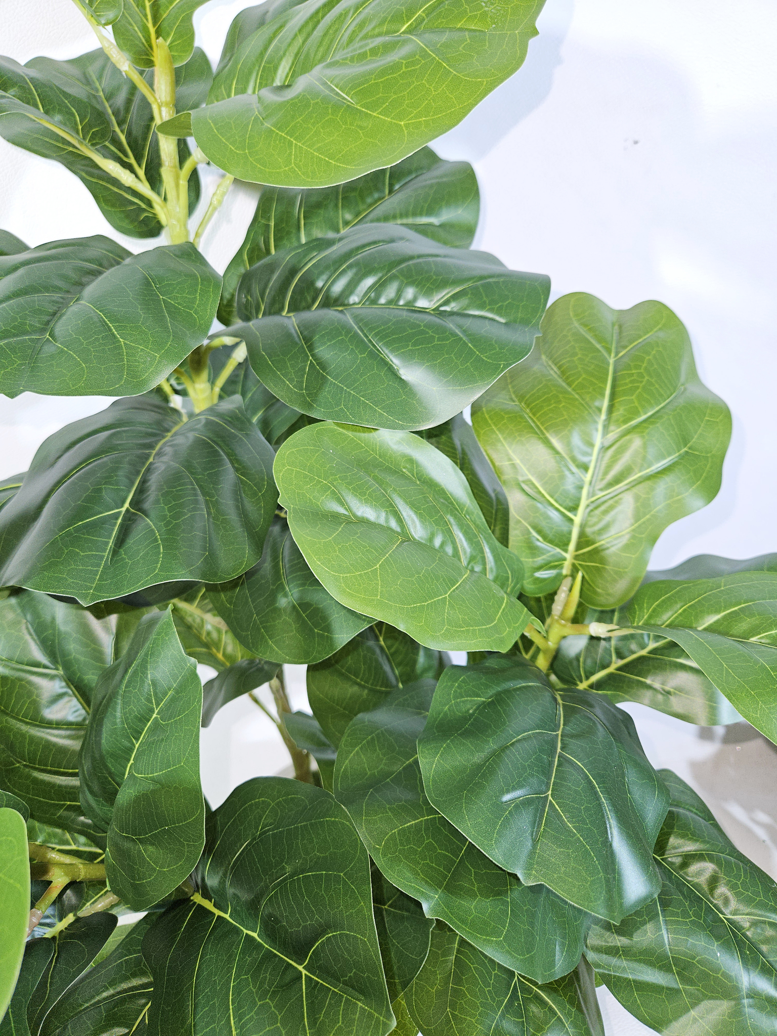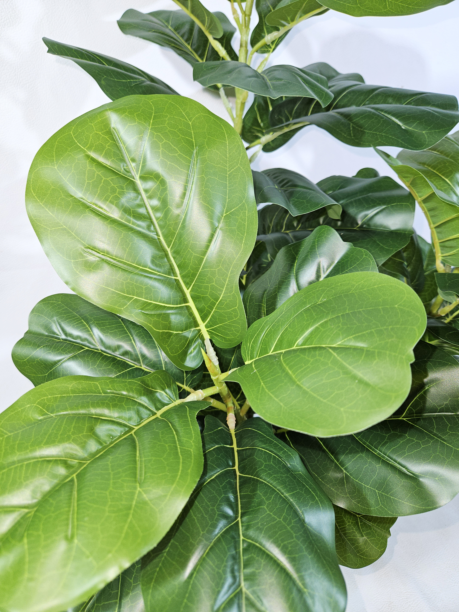 Современное искусственное растение - Фикус Лирата высотой 80см порадует Вас обилием листьев красивой формы, а также насыщенными зелеными оттенками листвы! В кашпо из белого пластика закреплены 3 ветки фикуса. В сердцевине веток – проволочное основание, которое позволяет изгибать их, формируя крону на любой вкус. И каждый листик тоже можно отогнуть. Неприхотливость, устойчивость к любому освещению и погодным условиям позволяют размещать кашпо с качественной имитацией фикуса в любом месте, будь то бассейн, ванная комната или даже открытая терраса. Искусственное растение Фикус Лирата не требовательно в уходе, не боится влаги. Его можно поставить в свое декоративное кашпо, чуть большего размера.