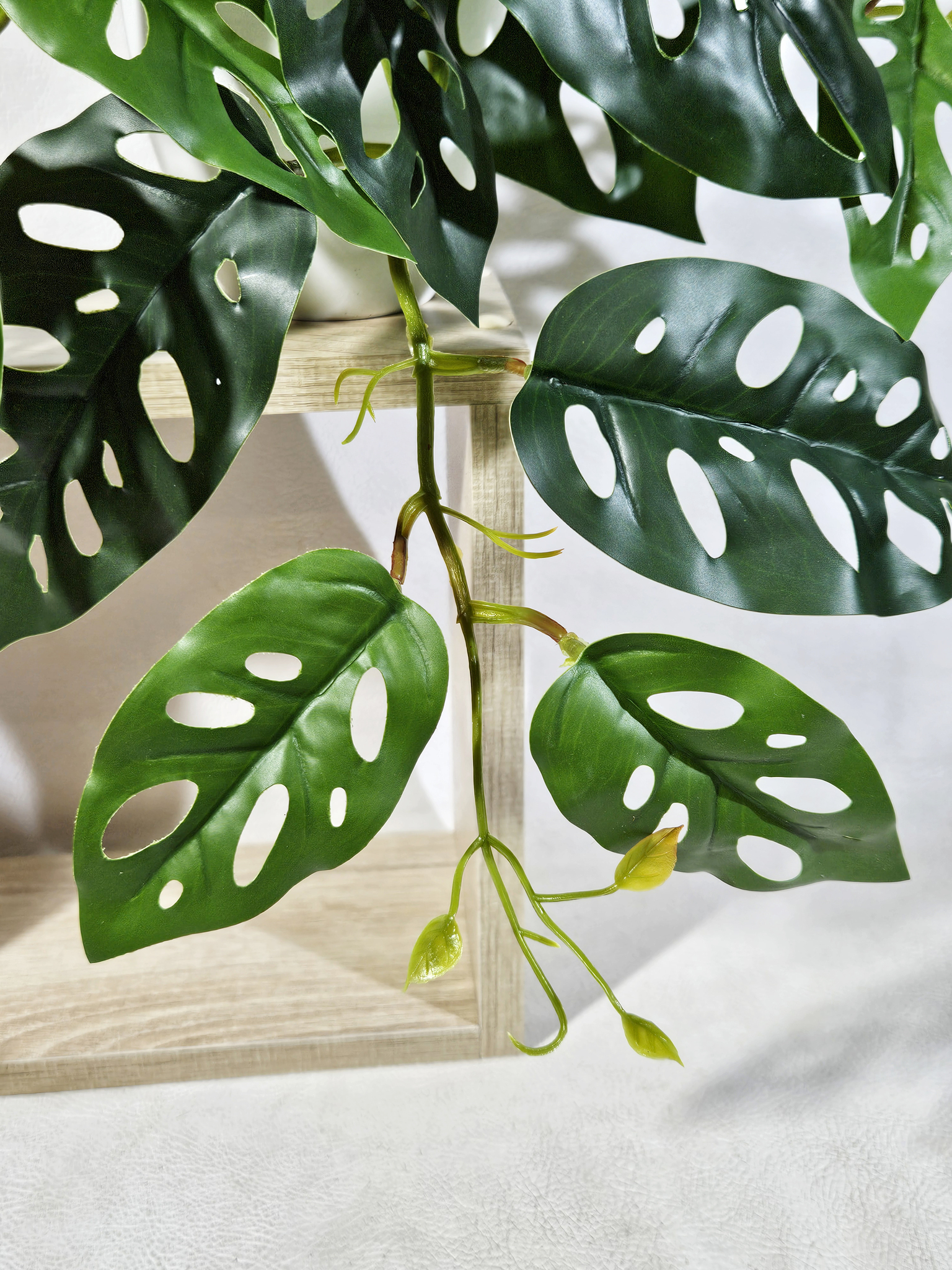 Искусственная Монстера в горшке — отличный выбор для тех, кто хочет наслаждаться красотой зелени, не утруждая себя поливом и уходом. Это растение идеально впишется в любой интерьер, будь то современный офис, уютная квартира или стильное кафе. Зелень искусственная в горшке делает пространство более живым и гармоничным, а благодаря высокому качеству, такое растение можно удобно разместить в любом уголке комнаты, в ванной комнате, в спальне, на полочке.