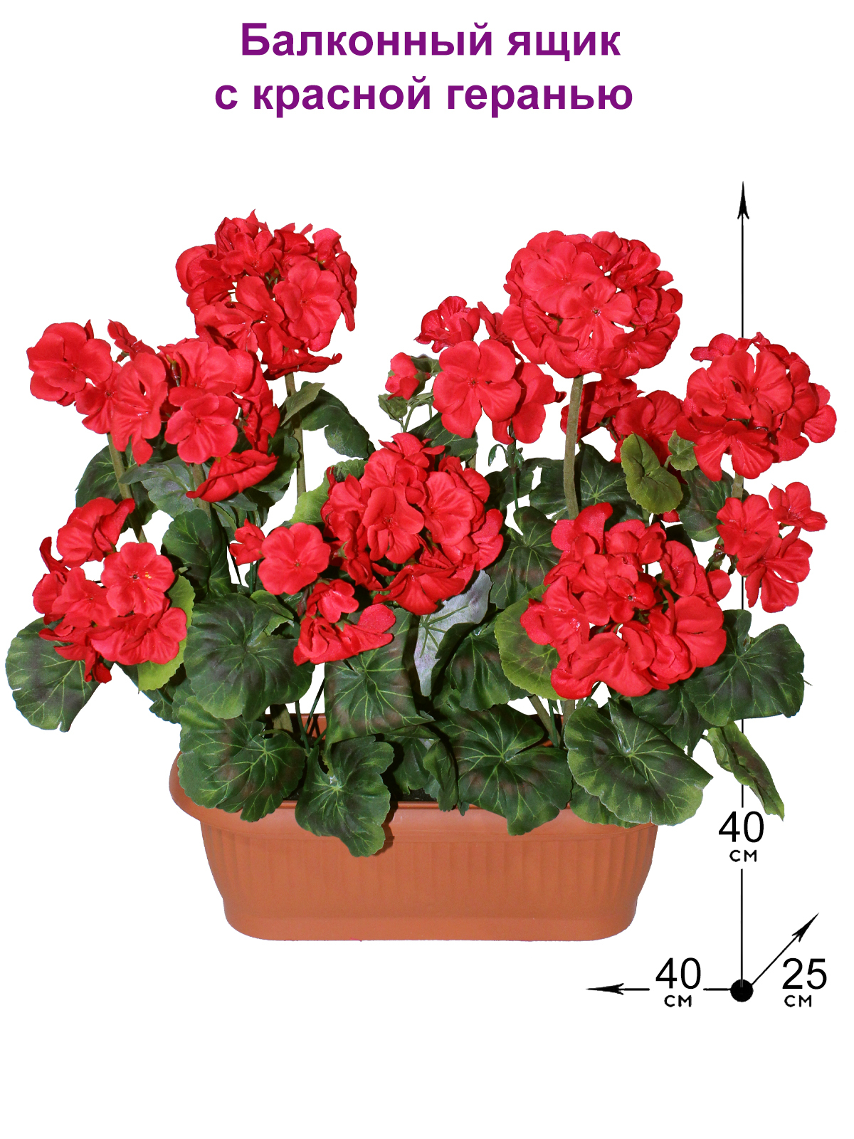 Искусственные цветы Герань красная в балконном ящике от ФитоПарк - отличный выбор для украшения вашего интерьера. Эти декоративные цветы создадут атмосферу уюта и комфорта в вашем доме. Искусственные цветы в горшке на окне привнесут яркие краски в вашу жизнь и будут радовать глаз своим очаровательным внешним видом.