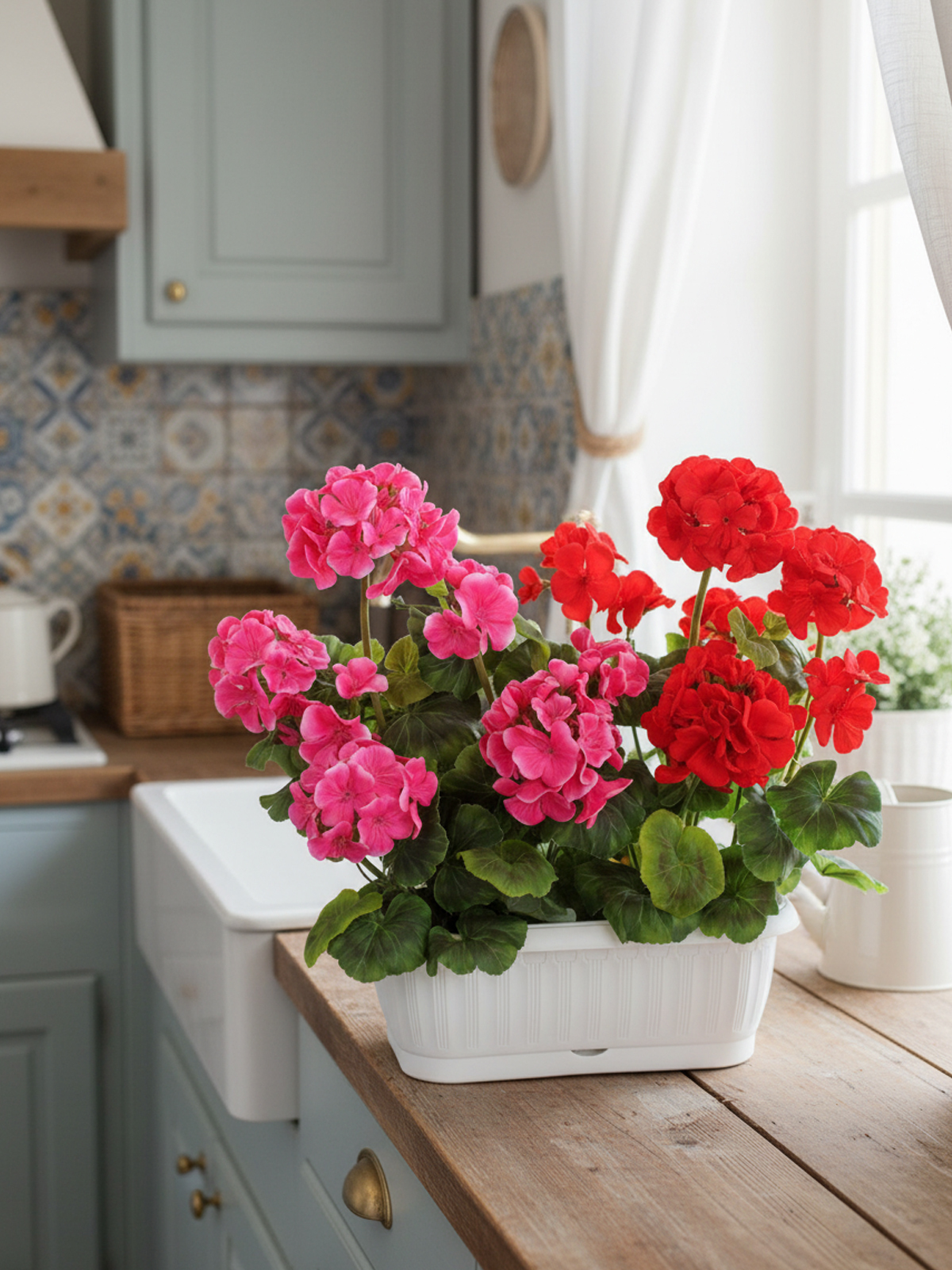 Искусственные растения становятся все более популярными в домах, офисах, кафе и ресторанах. Натуральный внешний вид и отсутствие необходимости в уходе делают их привлекательным выбором для тех, кто хочет добавить зелени и свежести в свою обстановку без лишних хлопот. Одним из самых популярных искусственных цветов является искусственная герань в горшке, которая может быть использована в различных стилях интерьера и в разных помещениях. Некогда вышедшее из моды растение снова стала популярным элементом декора благодаря своей элегантности и яркости. Она имеет красивые цветы и сочные листья, которые выглядят так реалистично, что трудно отличить их от настоящих, превосходя по эстетическим качествам различные сухоцветы. Используя растение искусственная герань в подвесном или настенном кашпо, вы можете создать изысканное и воздушное оформление для своего интерьера. Это особенно хорошо подходит для помещений с ограниченным пространством, таких как балконы и террасы. Живое растение требовательно к почве, поливу и обрезке. От всех этих хлопот Вас освободят наши искусственные цветы, которые невероятно реалистичны, долговечны и нетребовательны к уходу. Яркие соцветия искусственной герани украсят Ваш дом или дачу, офис, кафе или ресторан, добавив теплых красок и уюта балкону, лоджии или открытой террасе. Искусственная герань это – уникальное решение для декора, которое реально позволяет сэкономить Ваше время и усилия.Также это - прекрасный подарок для различных людей в вашей жизни. Для вашей мамы она может быть символом вашей заботы и любви, а также добавить красоты в ее дом. Для вашей подруги она будет отличным способом выразить благодарность и украсить ее интерьер. Для вашего коллеги или руководителя искусственная герань может стать элегантным и непринужденным подарком, который добавит нотку природы в их рабочее пространство. Для учительницы она станет удивительным подарком, который она сможет использовать для украшения класса и вдохновения своих учеников.Таким образом, искусственные цветы предлагают не только прекрасное декоративное решение для различных стилей интерьера и помещений, но и являются простым и непритязательным способом добавить зелень и свежесть в вашу обстановку. Будь то дом, офис или коммерческое помещение, искусственные растения могут стать прекрасным дополнением, а также замечательным подарком для ваших близких и коллег. Также в нашем магазине вы можете приобрести различные искусственные растения в кашпо, ампельные растения для оформления фото зоны, террасы, открытой веранды, нежные цветочные композиции для свадебного или иного торжества.