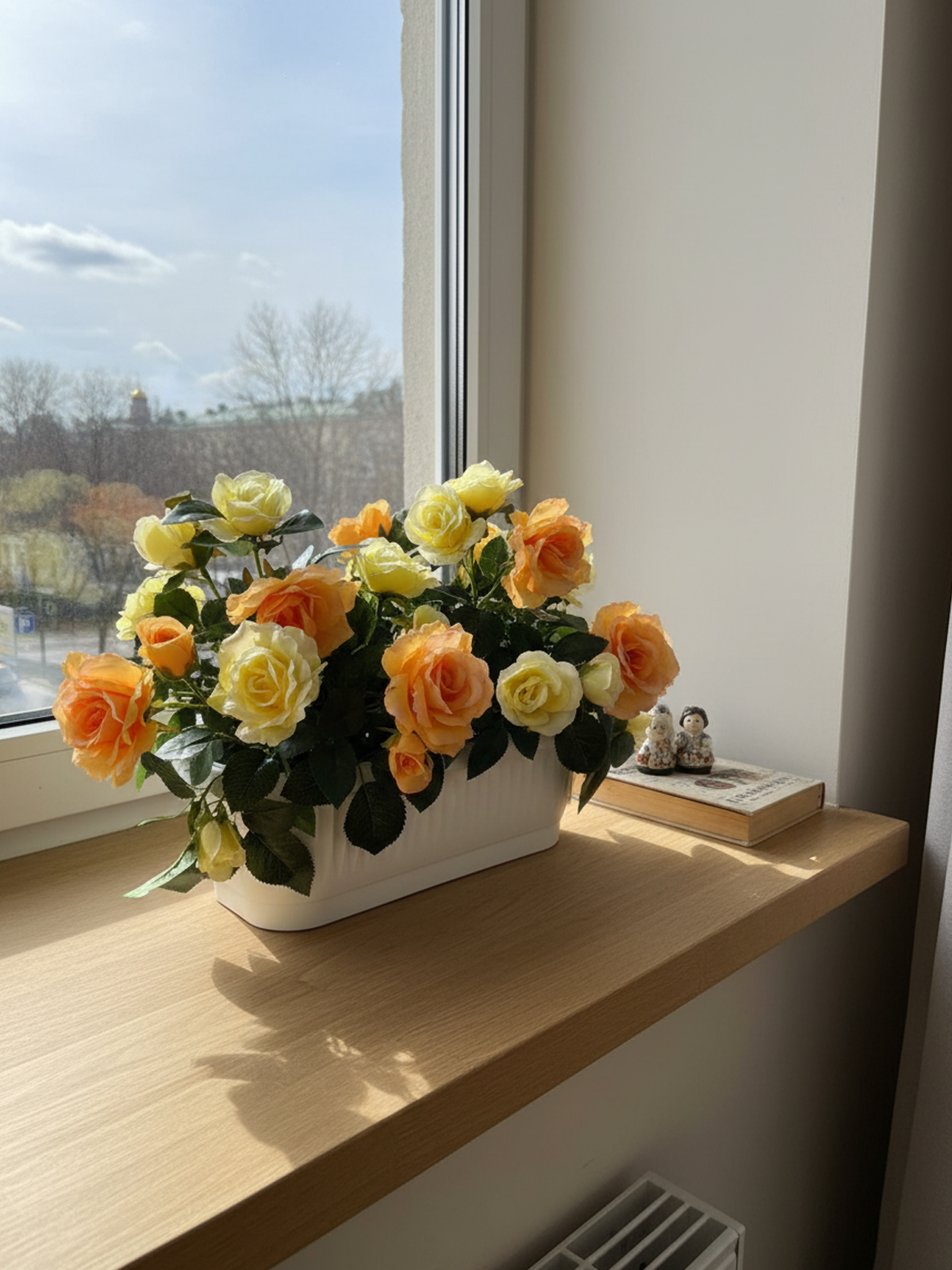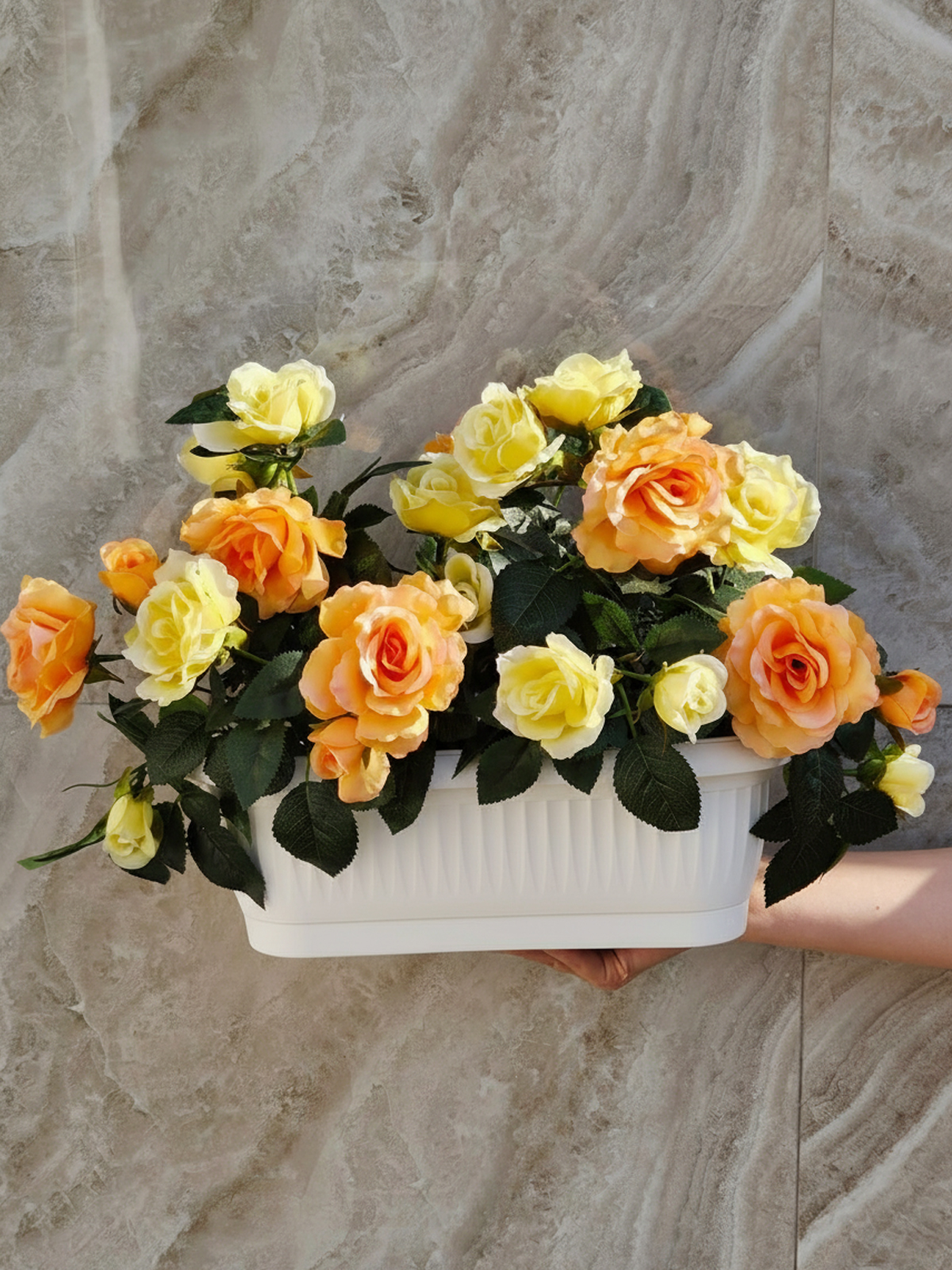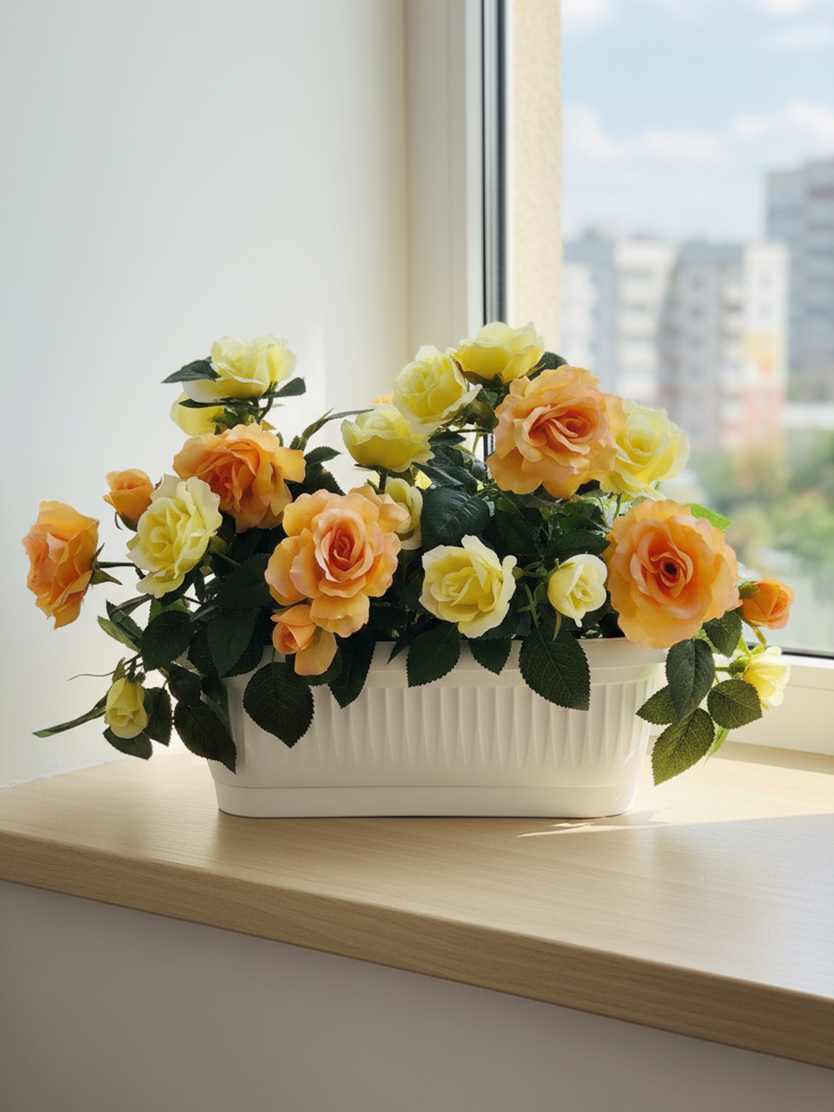 Искусственные чайные Розы в балконном ящике от бренда ФитоПарк – это идеальный декор для дома, дачи, школы или частного дома! Эти декоративные светлые розы придадут вашему интерьеру уют и элегантность, будь то ваш балкон, подоконник или садовая зона.