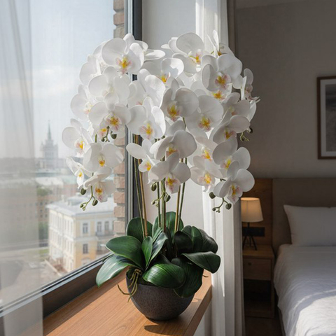 Искусственный бамбук в кашпо – это интерьерное растение, которое выглядит так же привлекательно, как его живые аналоги. Бамбук поставляется в разобранном виде (состоит из 2-х частей). Связка верхних веток прикреплена к нижним стволикам. Его естественная зелень и ажурная форма листьев из высококачественного латекса создают иллюзию настоящего растения. Высокий бамбук - это качественные листья из латекса и натуральные стволы бамбука! Бамбук в комнатных условиях вырастить сложно, поэтому искусственный бамбук часто используют как украшение дома благодаря его элегантности и способности создавать атмосферу спокойствия и гармонии. Интерьер Вашего дома – это отражение Вашего стиля и вкуса. Однако, создание уголка из живой зелени внутри помещения может представлять собой непростую задачу. Ограниченное освещение, недостаток времени на уход и изменчивость погоды – все это может сказаться на живых растениях. Но не отчаивайтесь, существует прекрасная альтернатива – искусственные растения, которые становятся все более популярными в декорировании интерьеров и превратят ваш интерьер в уютное место с природным шармом. Высокое напольное дерево можно использовать как декор для дома, офиса, школы или поликлиники. Декоративный бамбук в горшке может быть идеальным решением для тех, кто хочет добавить зелень в свой дом, но не может содержать живые растения в горшках. Искусственный бамбук в горшке также предлагает большую гибкость в планировании интерьера. Он дополнит декор спальни или кухни, деревянный декор дачи или коттеджа, сауны, бассейна, ресторана. Неоспоримым его преимуществом является долговечность. Вы можете наслаждаться красотой бамбука в течение многих лет, не беспокоясь о его здоровье и поддержке определенных условий для роста. Это – прекрасный подарок для Ваших близких. Оригинальный подарок учителю, учительнице или подруге, а также маме. Высокое декоративное дерево в кашпо подойдет на день рождения, день матери или день учителя, выпускной и 1 сентября. Высокий искусственный бамбук в интерьере создает приятную атмосферу и станет центральным элементом дома, придавая ему утонченность и шарм. Таким образом, декоративный бамбук в кашпо – это идеальное решение для тех, кто хочет добавить зелени и живого шарма в свой интерьер, не заботясь о сложностях ухода за живыми растениями. Он прекрасно сочетается с мебелью из бамбука, с другими растениями для дома, такими как пальма декоративная, фикус в кашпо, искусственная лиана и может стать центральным элементом дизайна в больших и малых пространствах. Бамбук поставляется в разобранном виде. После получения надо аккуратно вставить пластиковые верхние части в натуральные бамбуковые стволы.