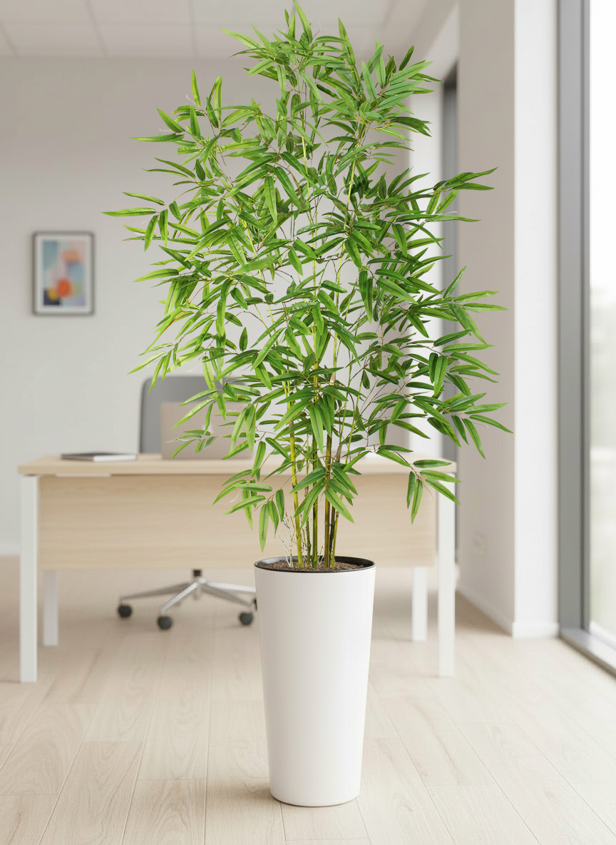 Искусственный бамбук в высоком глянцевом белом кашпо