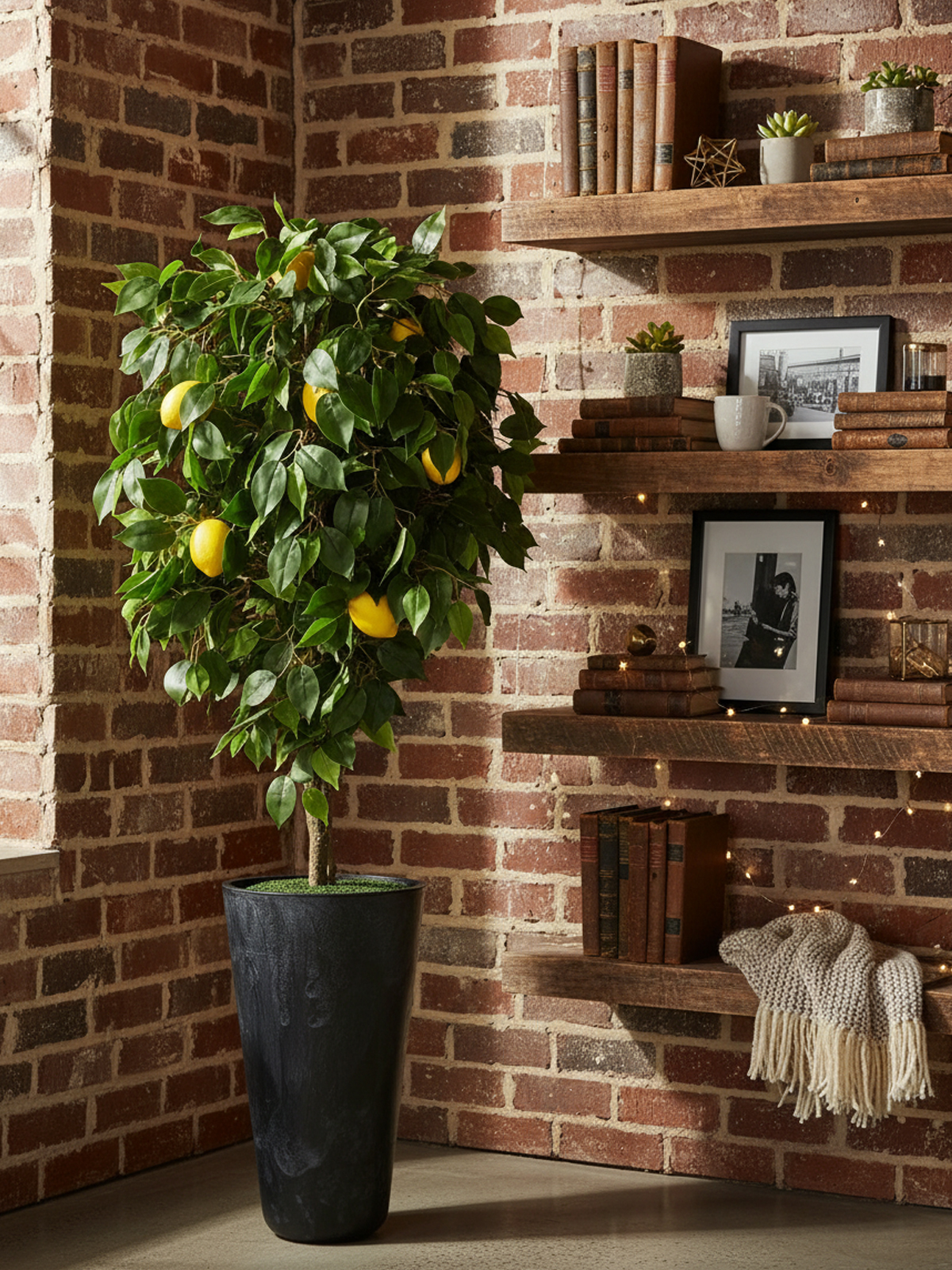 Искусственный Лимон 180см в высоком черном кашпо
