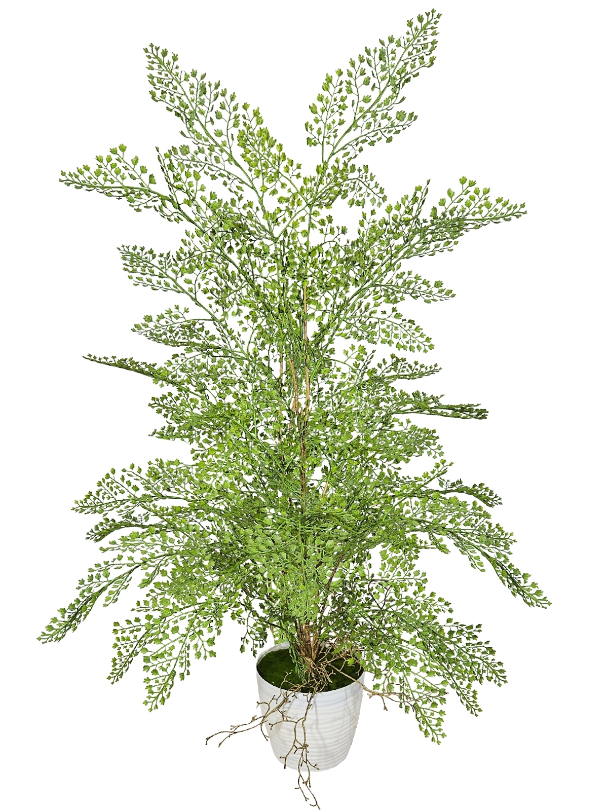 Невероятно реалистичный, ажурный папоротник Адиантум 2 куста с корнями в белом кашпо отлично вольется в интерьер, украсив собой любое пространство. Искусственное растение в горшке не требовательно в уходе, но привлекает к себе внимание и поднимает настроение свежим серо-зеленым цветом и красотой. Мы рекомендуем поставить это высокое искусственное растение в свое декоративное кашпо.