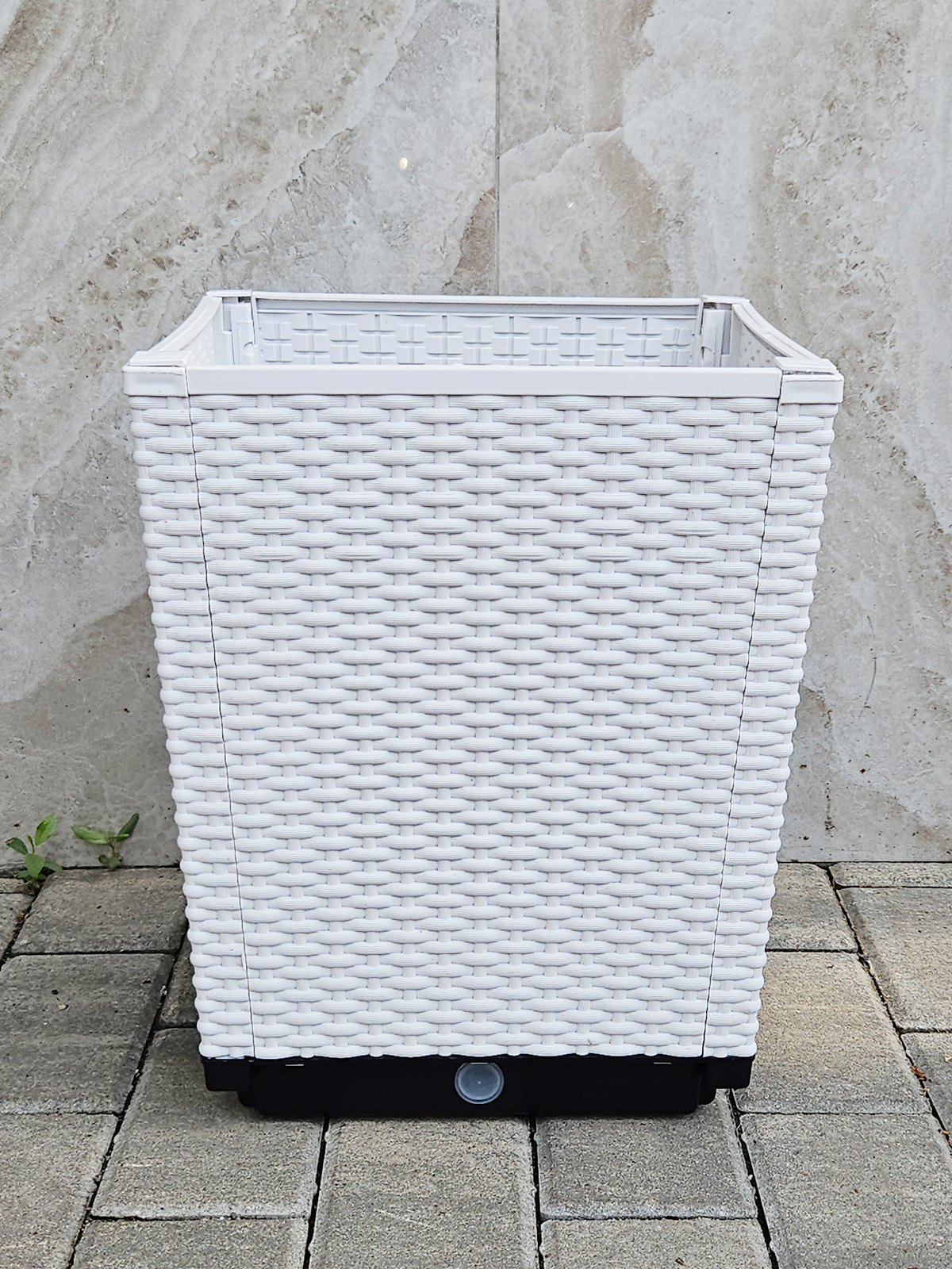 Представляем вашему вниманию уличное кашпо с дренажной вставкой, высотой 37см из белого ротанга со сливом. Это идеальный декор для любителей сада и цветов, стремящихся создать уют и гармонию в своем пространстве. Это квадратное пластиковое кашпо Ротанг - отличное украшение дома и улицы, что делает его универсальным выбором для любого интерьера. Прочный и устойчивый материал ротанг искусственный прекрасно противостоит воздействию окружающей среды, что обеспечивает длительный срок службы изделия даже при размещении на открытом воздухе. Ротанговое кашпо со сливом дачное - отличный вазон для живых цветов - идеально подходит для озеленения террасы, балкона или сада, для украшения веранды в саду.