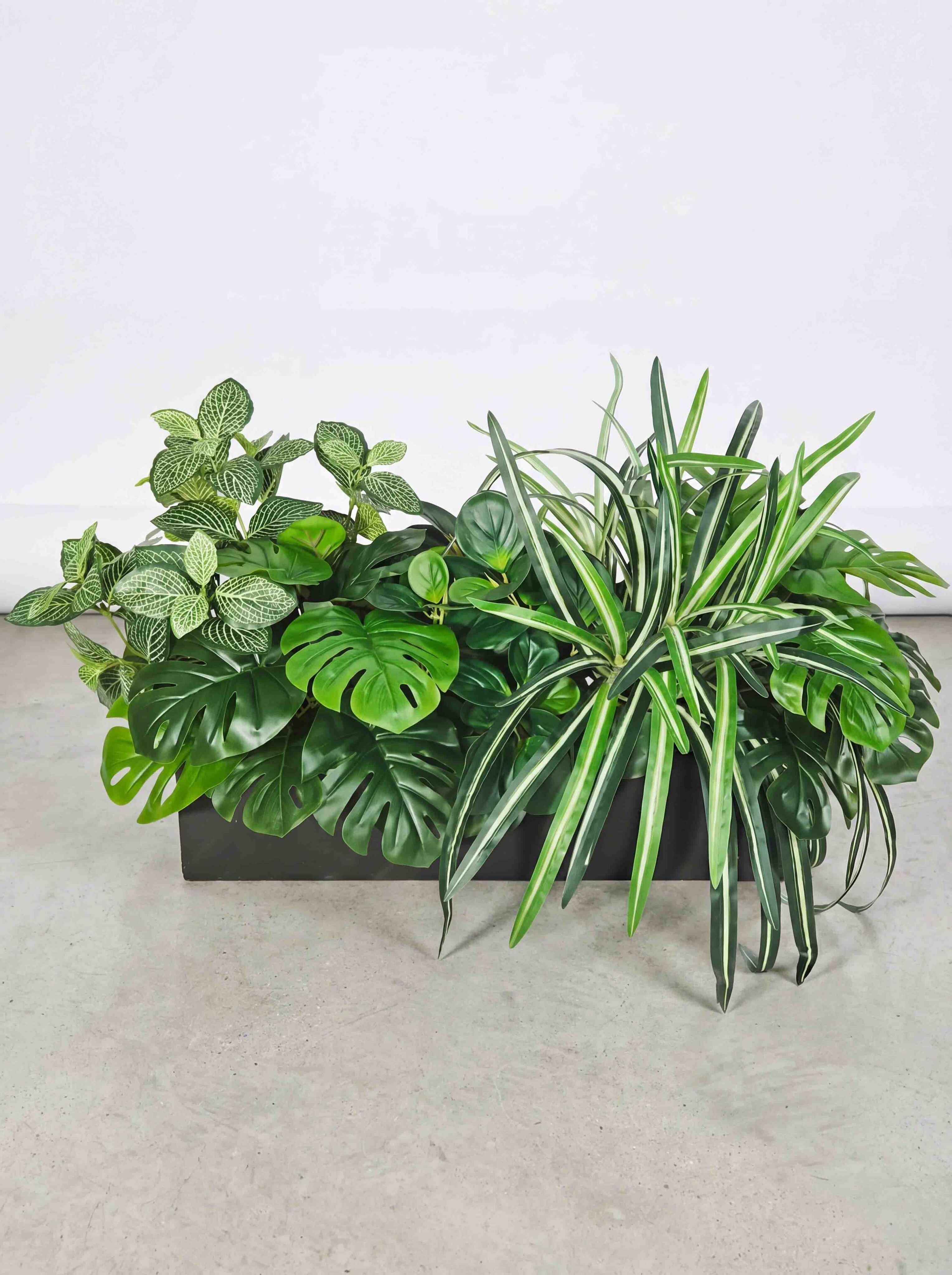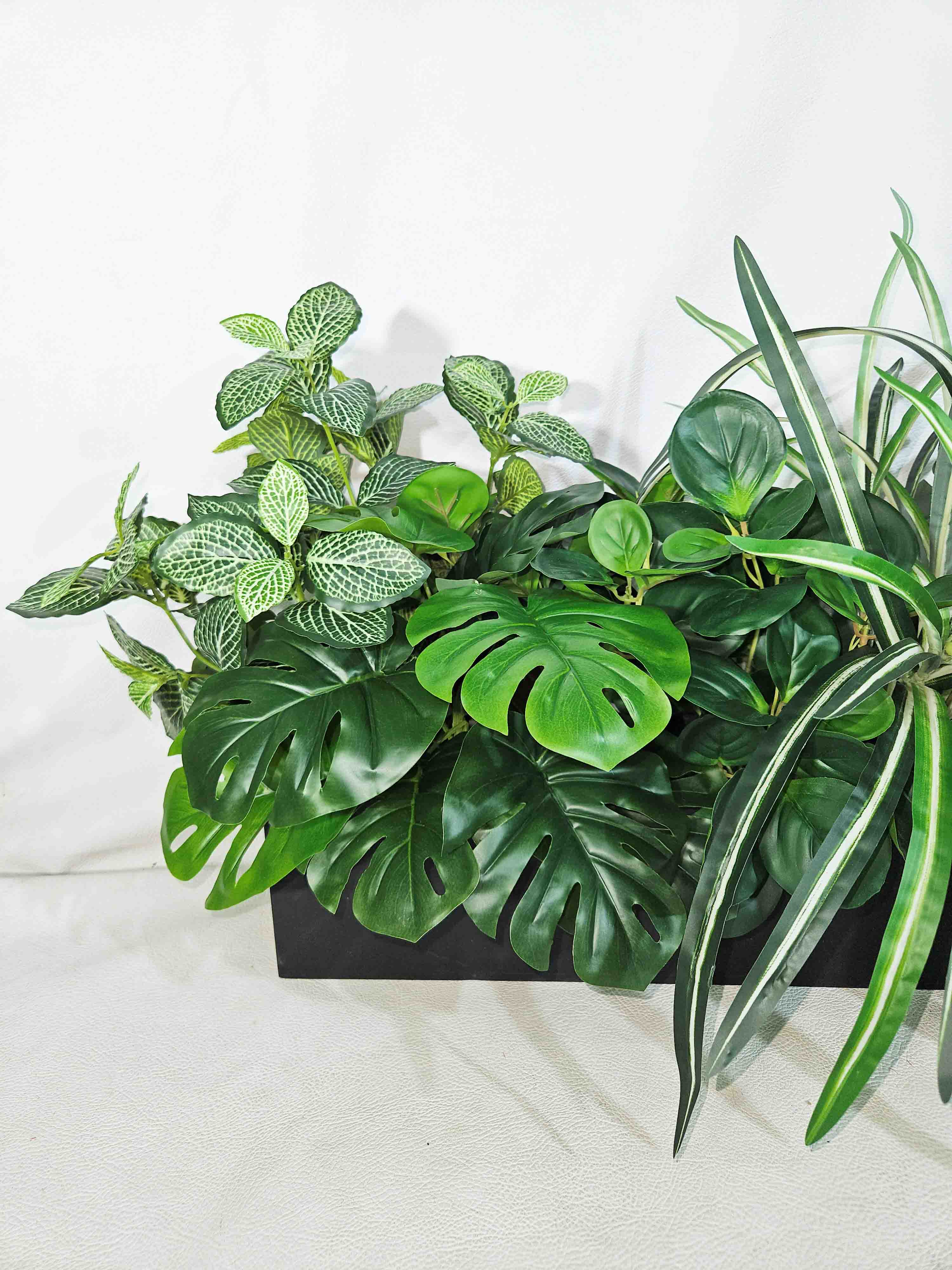 Познакомьтесь с композицией из искусственных растений "Зеленый офис" от ФитоПарк - идеальным решением для создания уютного и стильного интерьера в вашем доме или офисе. Эта композиция представляет собой сочетание качественных искусственных растений из латекса, таких как хлорофитум, фиттония, монстера и пеперомия, которые закреплены в черном кашпо из дерева, длиной 55см. Такие искусственные цветы и растения идеально подойдут для оформления офисного пространства, комнаты переговоров, для украшения коридора, длинного стола или подоконника.