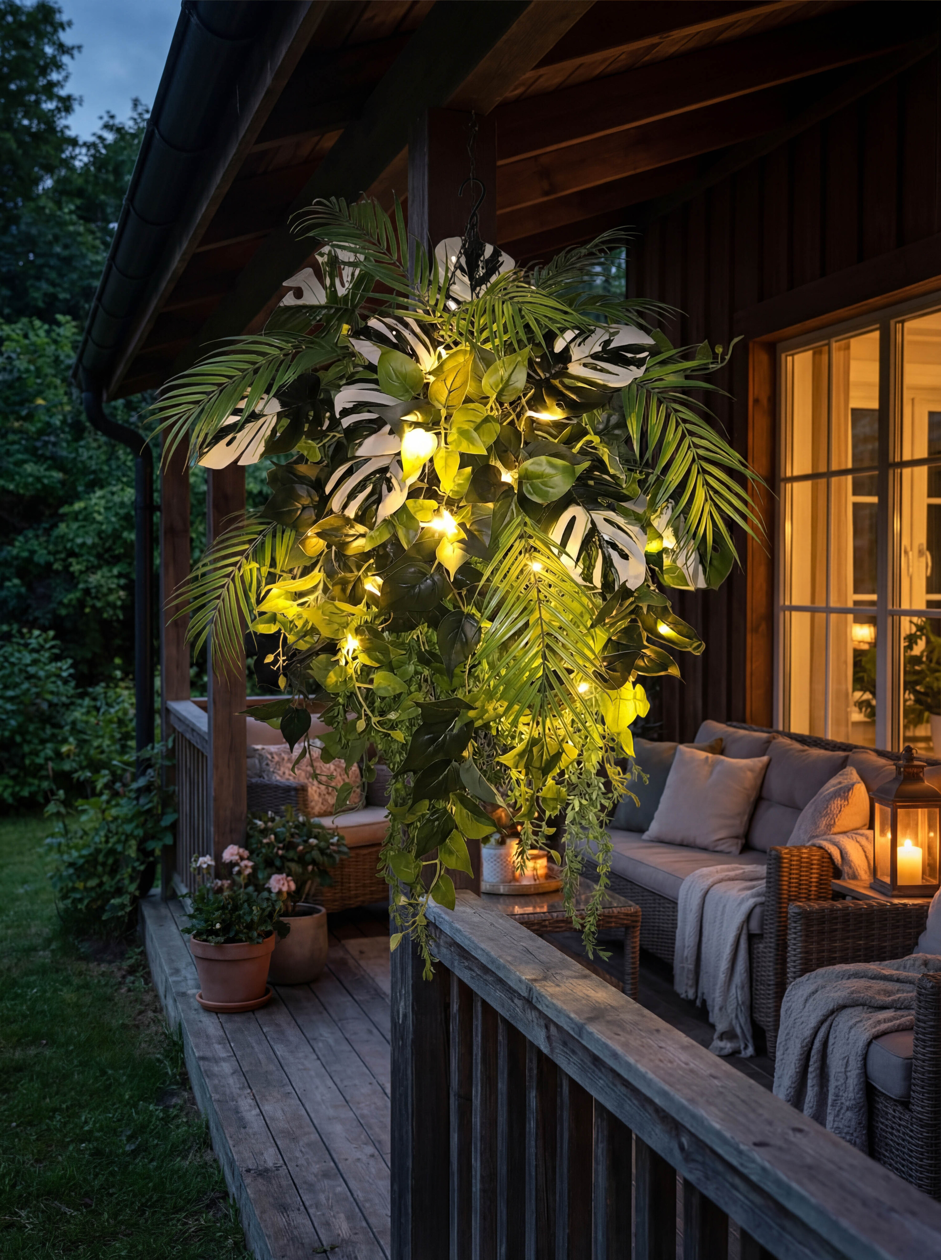 Растения и лианы хорошо закреплены в кашпо коковита с металлической цепочкой, которое легко подвесить на террасе или балконе. После получения надо просто расправить растения, распределить их равномерно по объему и наслаждаться красотой и зеленью круглый год!