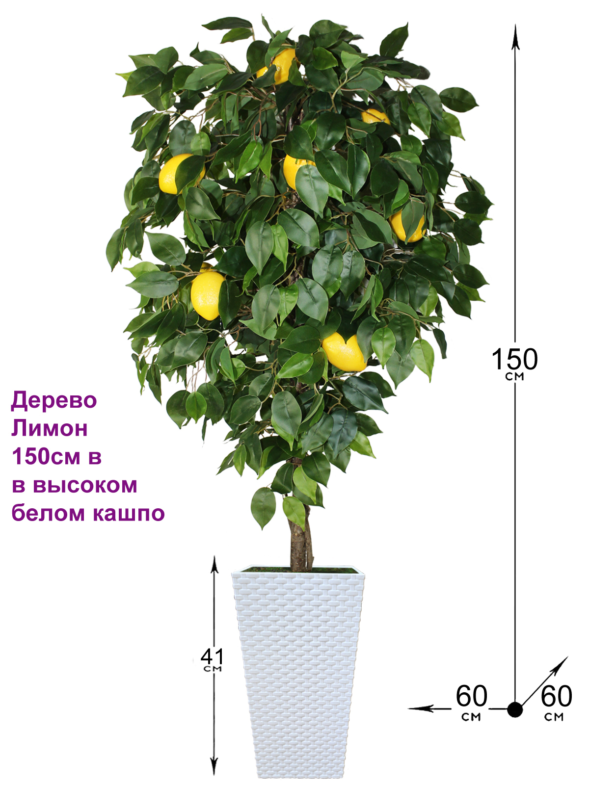Дерево большое искусственное для дома в горшке смотрится очень органично и естественно. Белое кашпо из пластика высотой 41 см добавляет изящество и стиля данному комплекту. А дополнить композицию можно любимым ароматом цитруса или цветов лимона! Такое дерево с лимонами станет оригинальным подарком жене или маме, любимой женщине или сестре!
