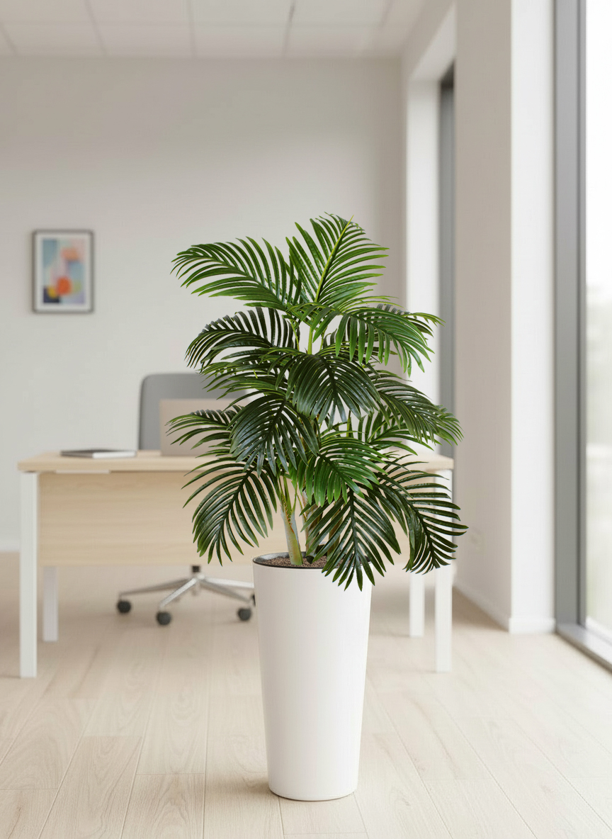 Искусственная пальма в высоком напольном кашпо