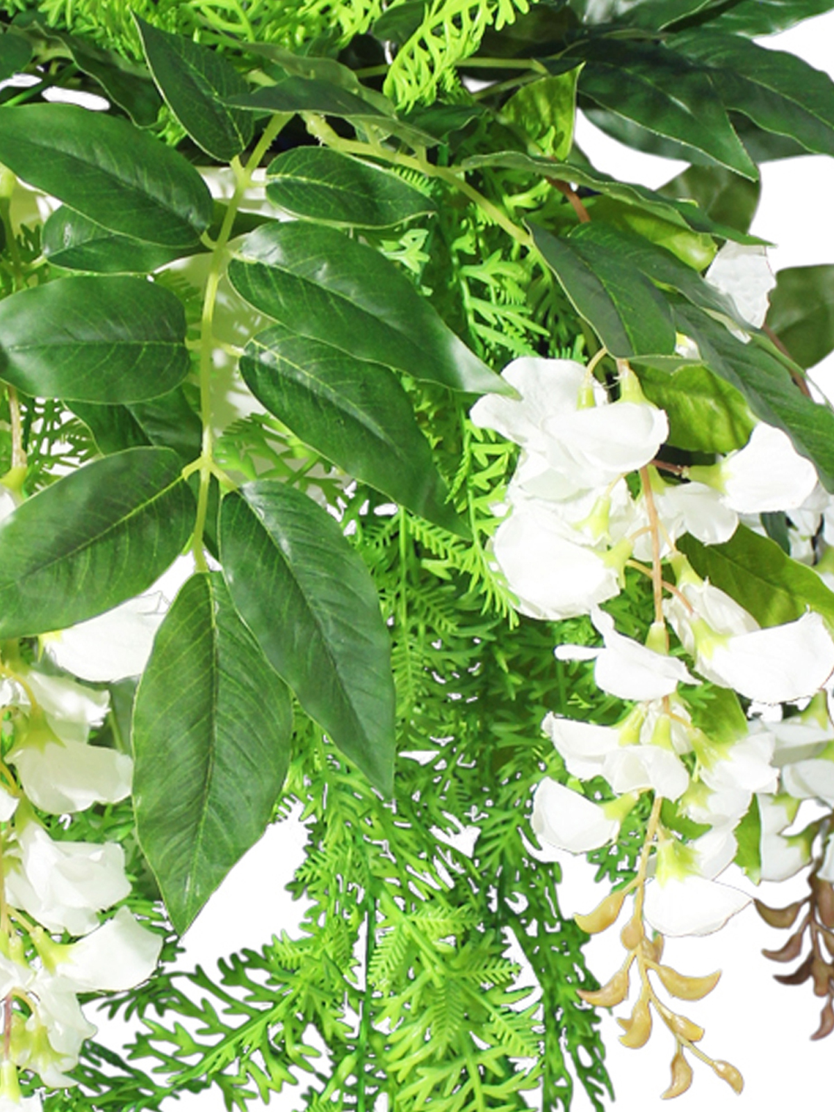 Искусственные цветы белой акации 5 цветков с зеленью в подвесном коричневом кашпо на цепочке - отличное украшение для кухни или балкона! Искусственные растения в кашпо являются прекрасным подарком на различные праздники. Независимо от того, будет это новоселье, юбилей или другое семейное торжество. Такой подарок маме, подруге, сестре, учителю, сотруднице, классному руководителю привнесет красоту и свежесть в интерьер, радуя получателя на протяжении многих лет. Акация ампельная является прекрасным выбором для тех, кто хочет добавить природный шарм и уют в свой интерьер, украсить фотозону или семейное торжество без лишних хлопот. Искусственная акация в подвесном пластиковом кашпо это прекрасное оформление открытой веранды, кафе, сцены, зала, выпускного вечера, бала. Искусственные белые цветы, особенно акация - отличное украшение свадебного торжества, ЗАГСа, банкетного зала. У нас Вы сможете купить самые разные искусственные растения, такие как искусственные деревья с цветами или плодами, пальмовые миксы и искусственные пальмы, бамбук, папоротник. Качество ассортимента нашего магазина и обширная цветовая гамма приятно удивят Вас.