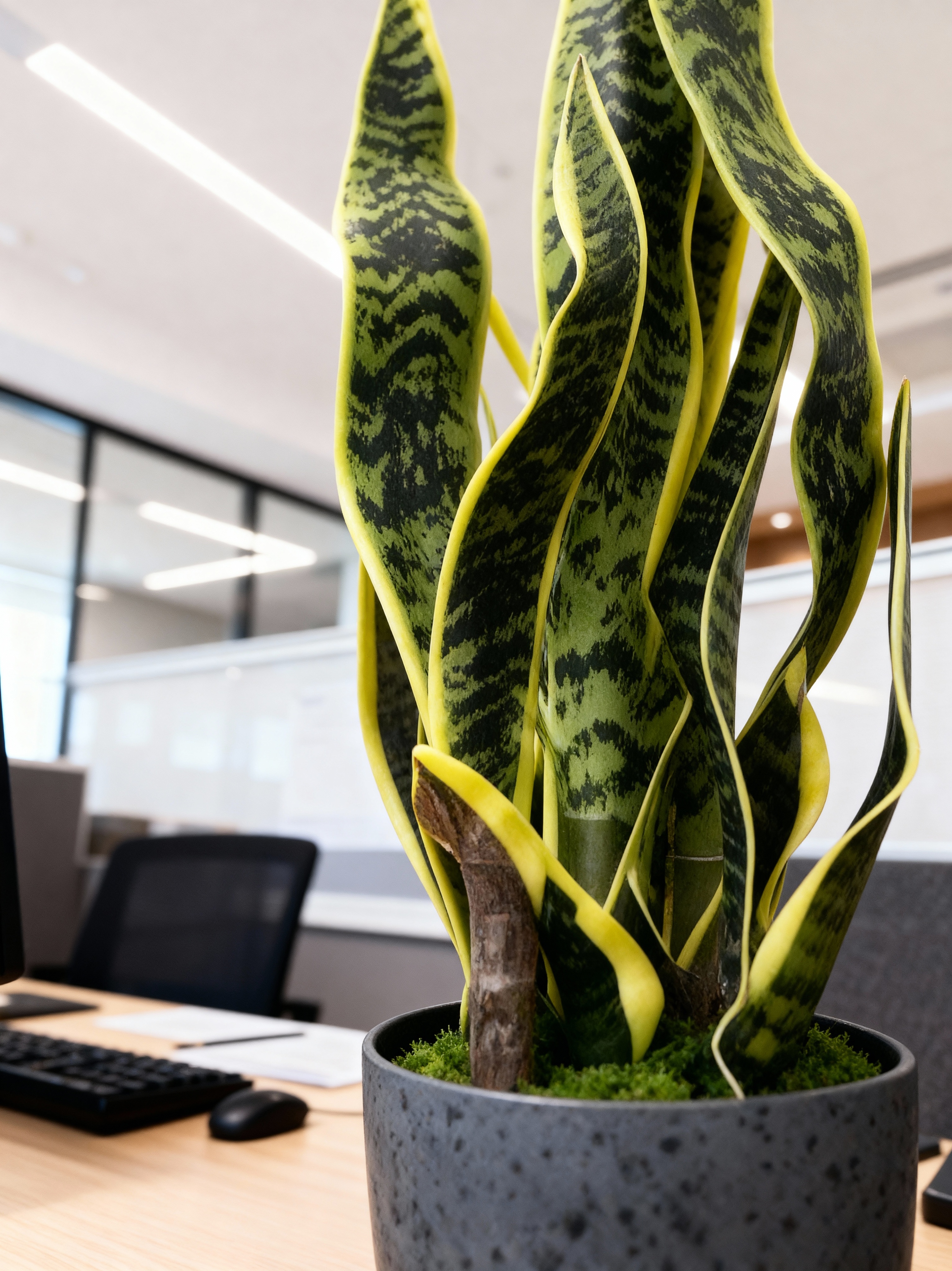 Яркая и элегантная искусственная Сансевиерия в черном кашпо станет стильным украшением интерьера дома, офиса, гостиницы, кафе, ресторана. Это благородное домашнее растение с удлиненными листьями мечевидной формы зелёного цвета с сочной жёлтой окантовкой, часто называют ещё Щучий хвост или Тещин язык, охотно используется дизайнерами в декоре интерьера для создания акцента цвета и формы.
