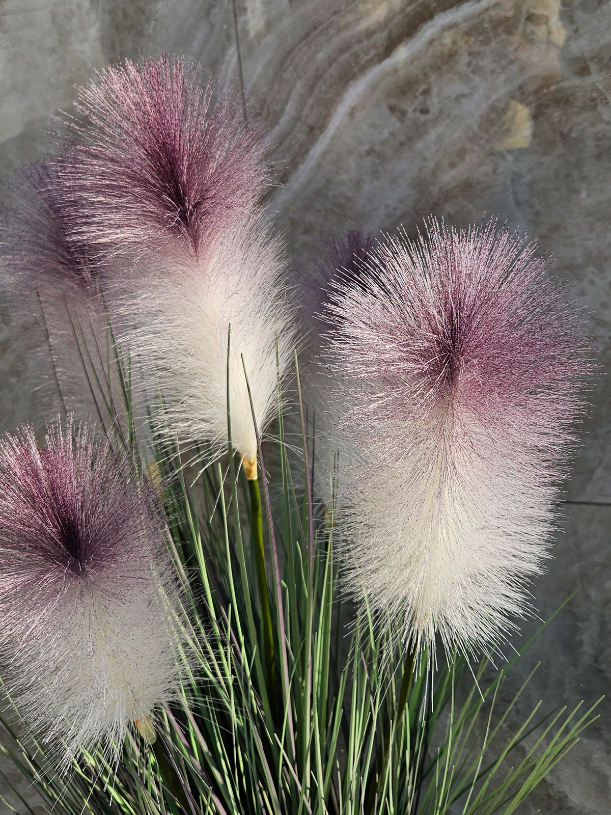 Пампасная трава искусственная в кашпо станет великолепным акцентом в дизайне любого помещения. Высота травы составляет 105 см, что делает её заметным элементом интерьера. Лиловые султаны добавляют изысканности и оригинальности композиции, привлекая к себе взгляд и создавая уютную атмосферу.